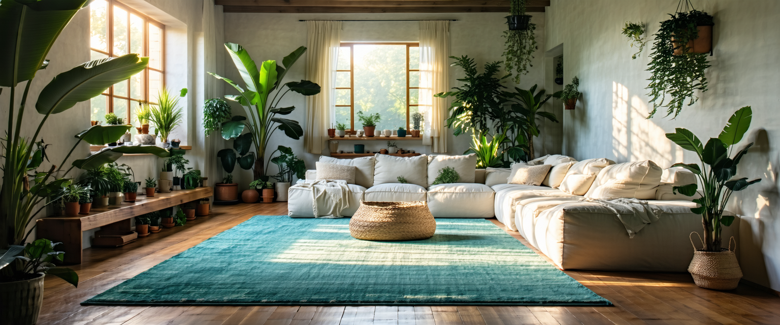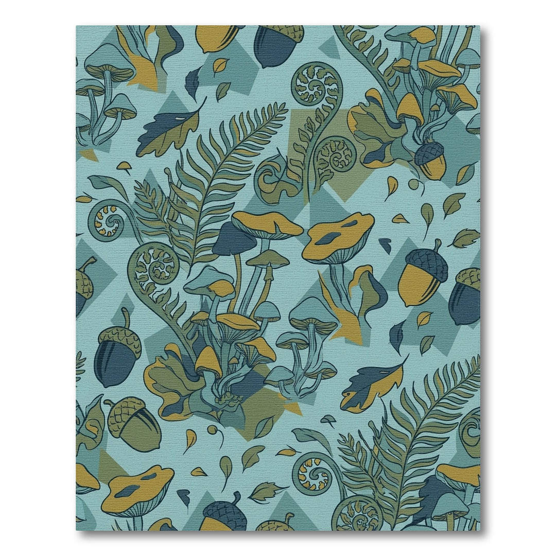Forest Mushrooms Fern Acorns Teal Yellow Rug