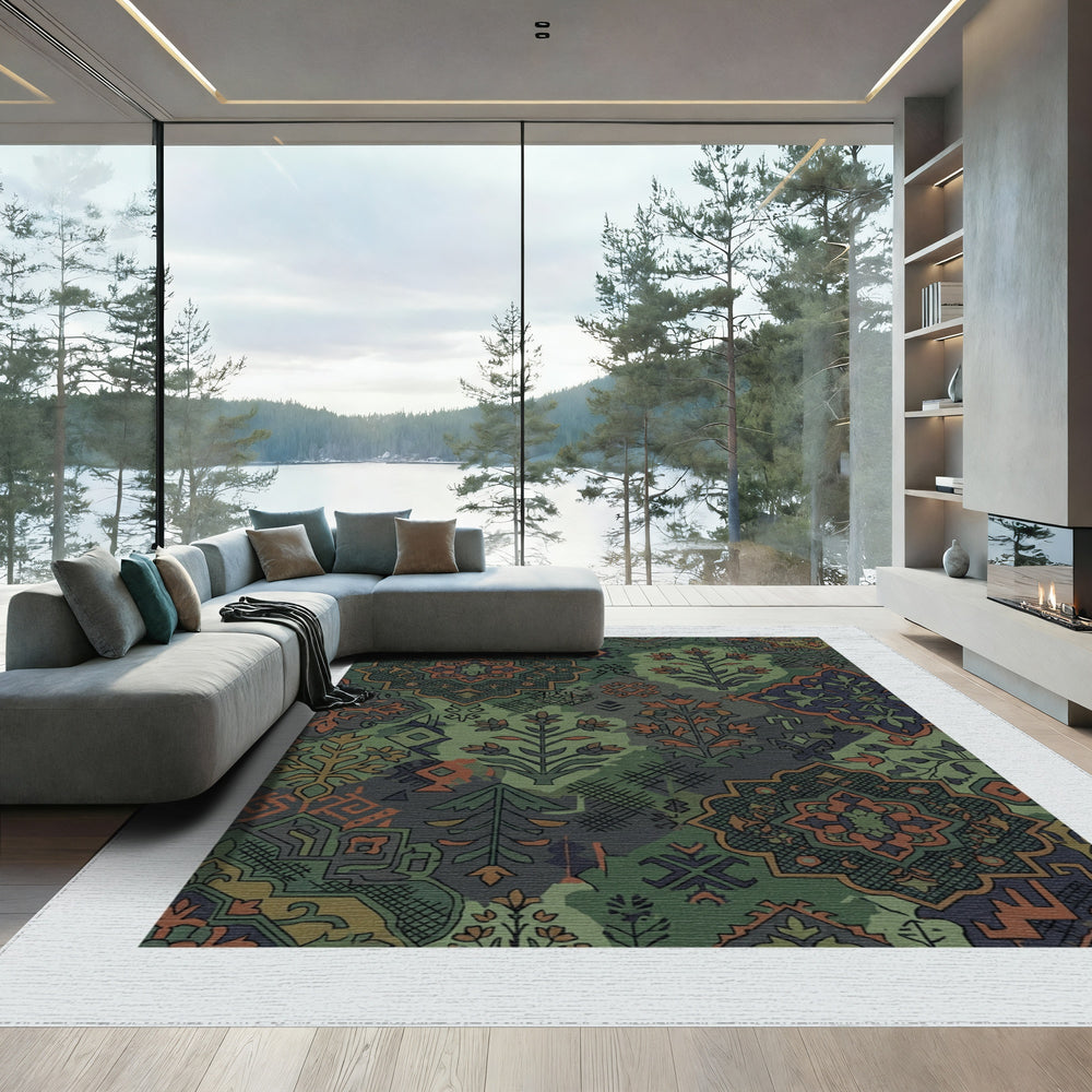 Emerald Dragon Pagoda Landscape Harmony Rug