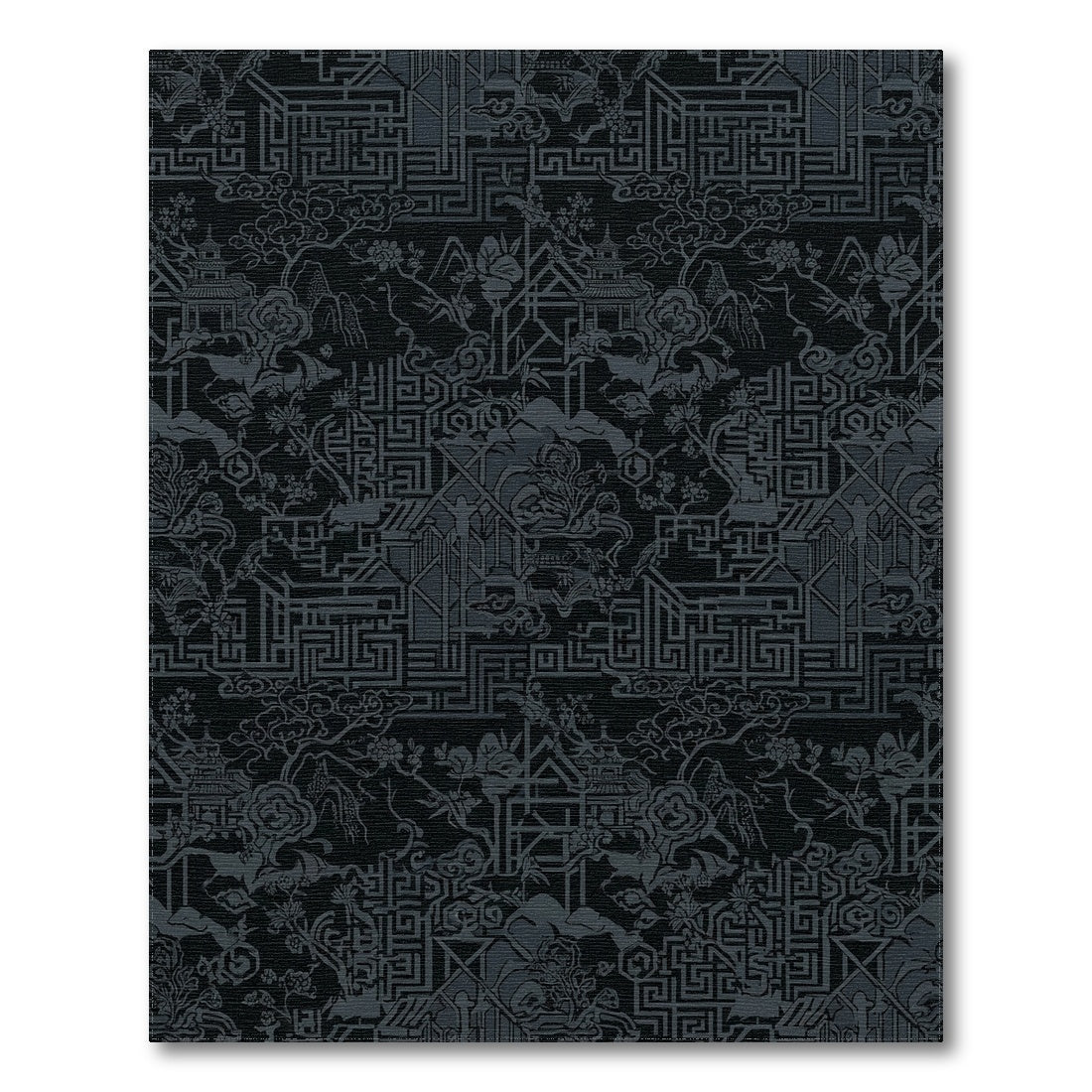 Flatwoven High Traffic Area Rug, Dark Gray Oriental Temple Landscape Rug, Non Slip, Stain Resistant, Washable Area Rugs for Living Room, Bedroom Overview: