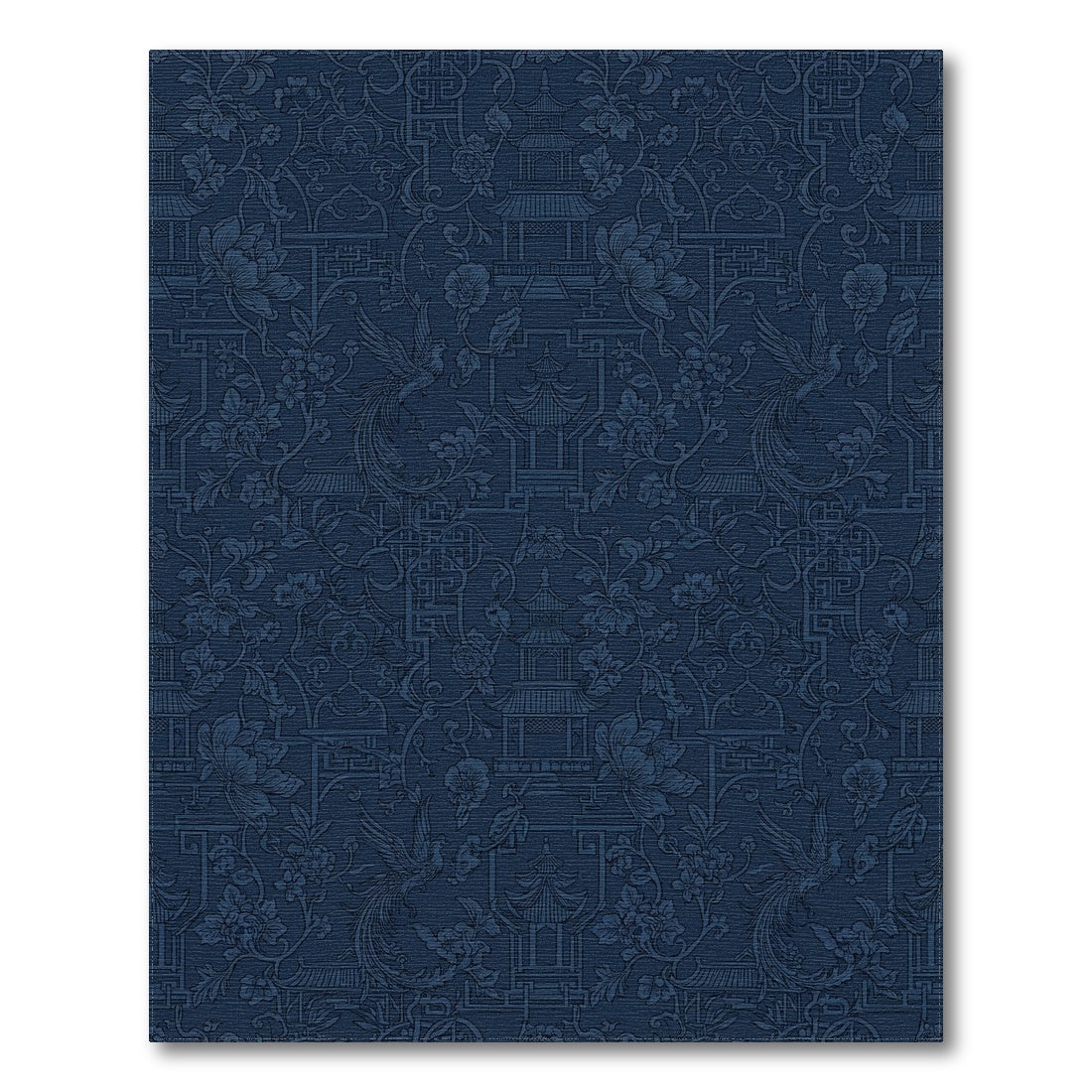 Flatwoven High Traffic Area Rug, Deep Blue Imperial Pagoda Phoenix Rug, Non Slip, Stain Resistant, Washable Area Rugs for Living Room, Bedroom Overview: