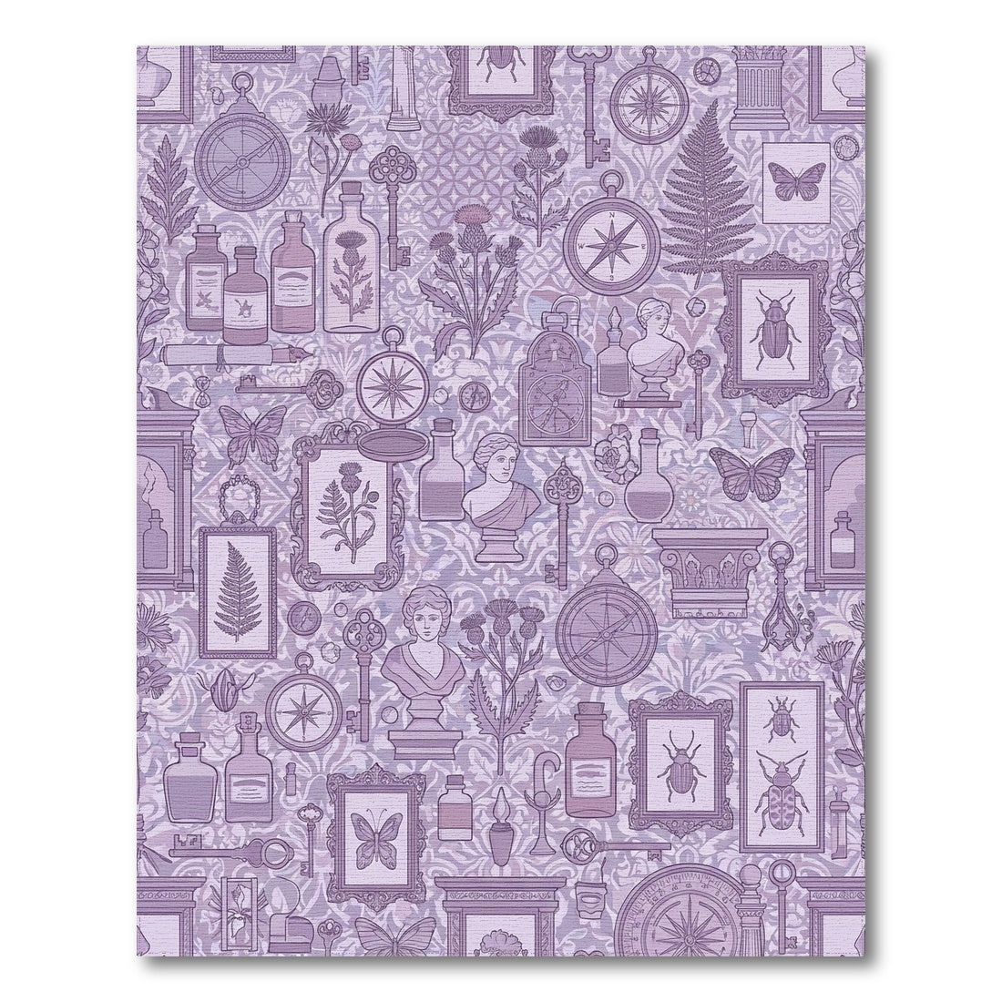 Flatwoven High Traffic Area Rug, Whimsical Violet Botanical Curiosity Collage Rug, Non Slip, Stain Resistant, Washable Area Rugs for Living Room, Bedroom Overview: