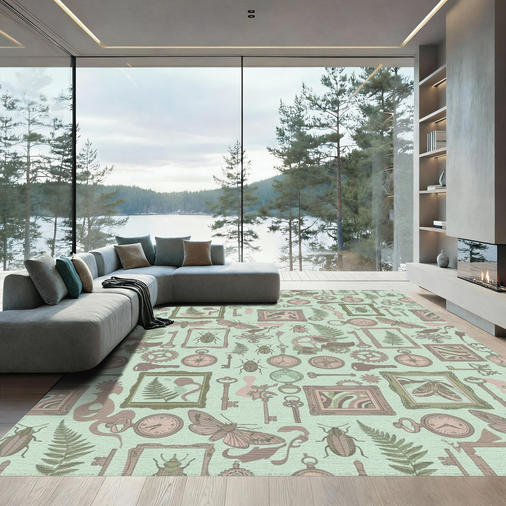 Vintage Scientific Curiosities Entomology Botanical Rug