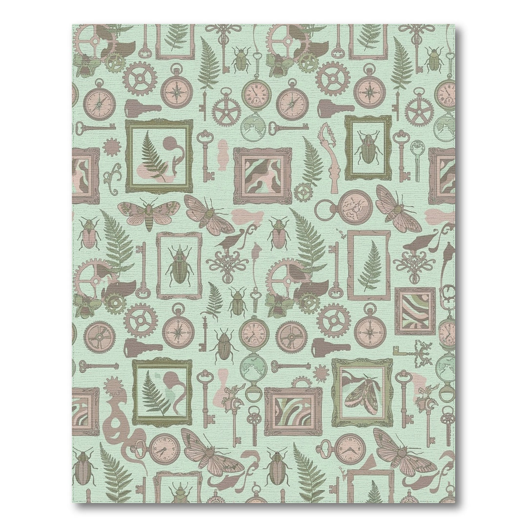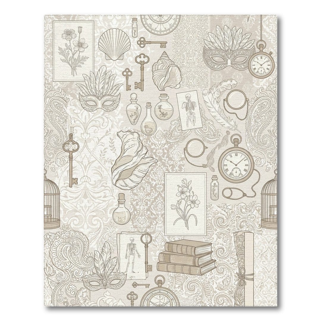 Vintage Wonders Clocks, Keys, Ferns, Globes Rug