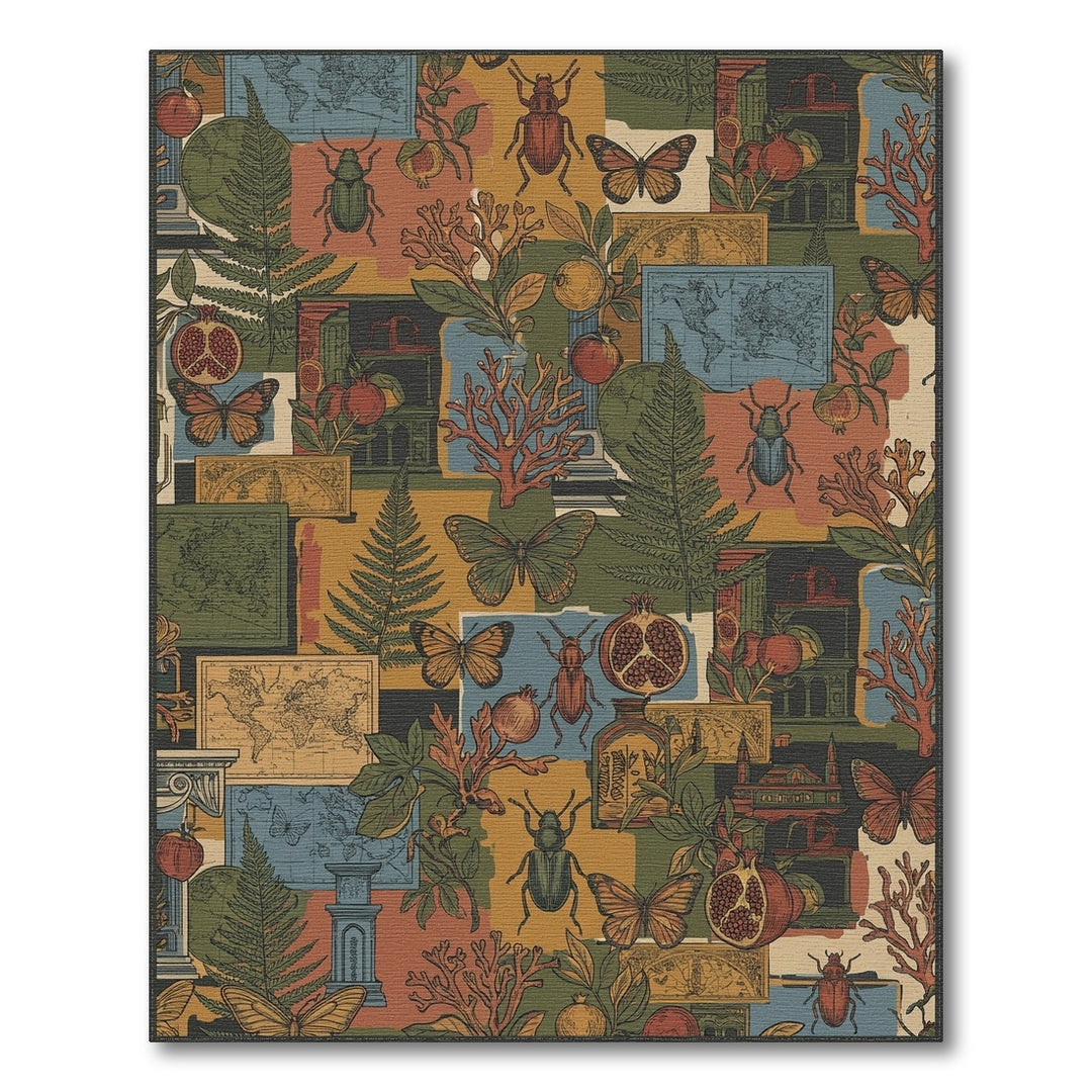 Vintage Beetles Butterflies Pomegranates Maps Rug