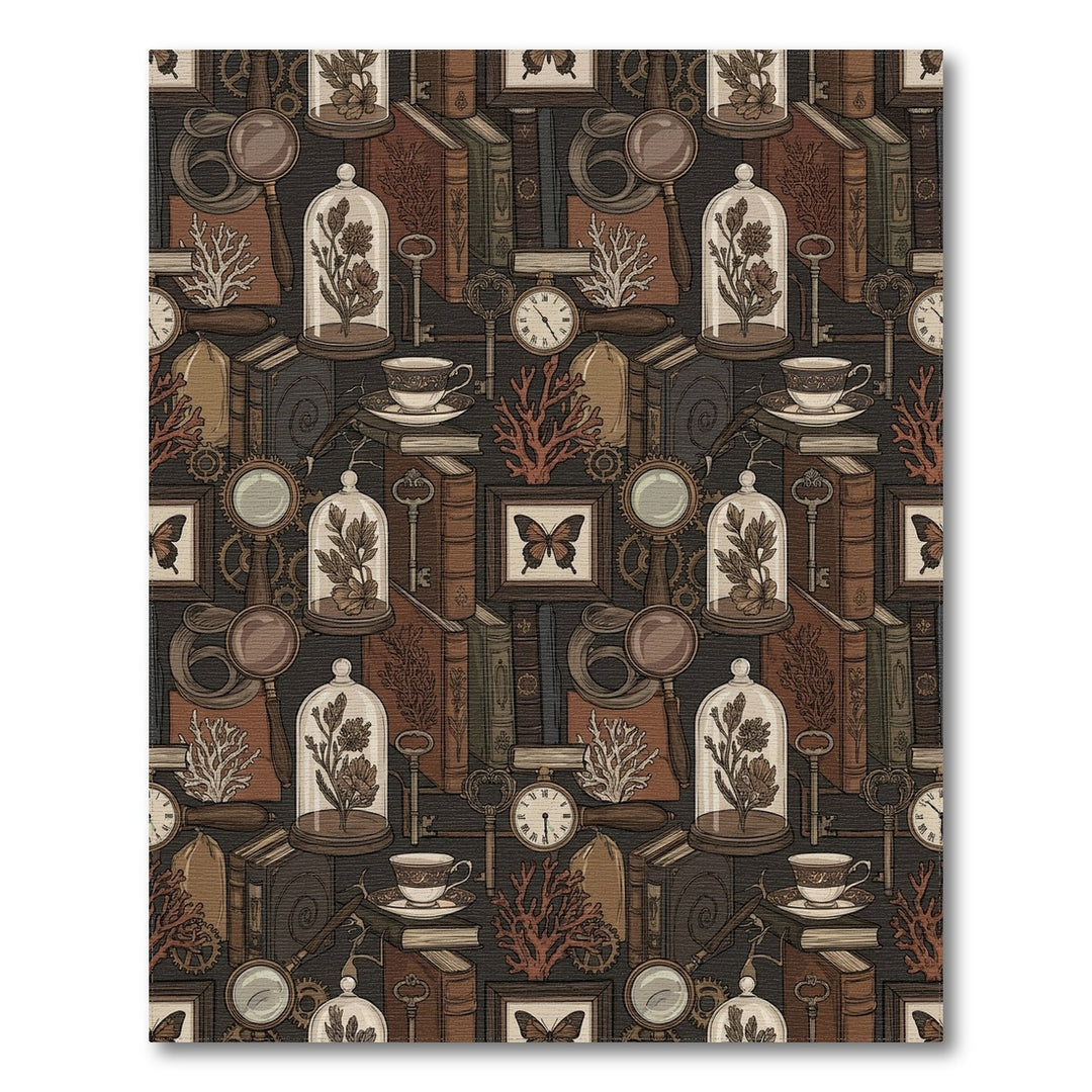 Vintage Steampunk Botanical Curiosity Collection Rug