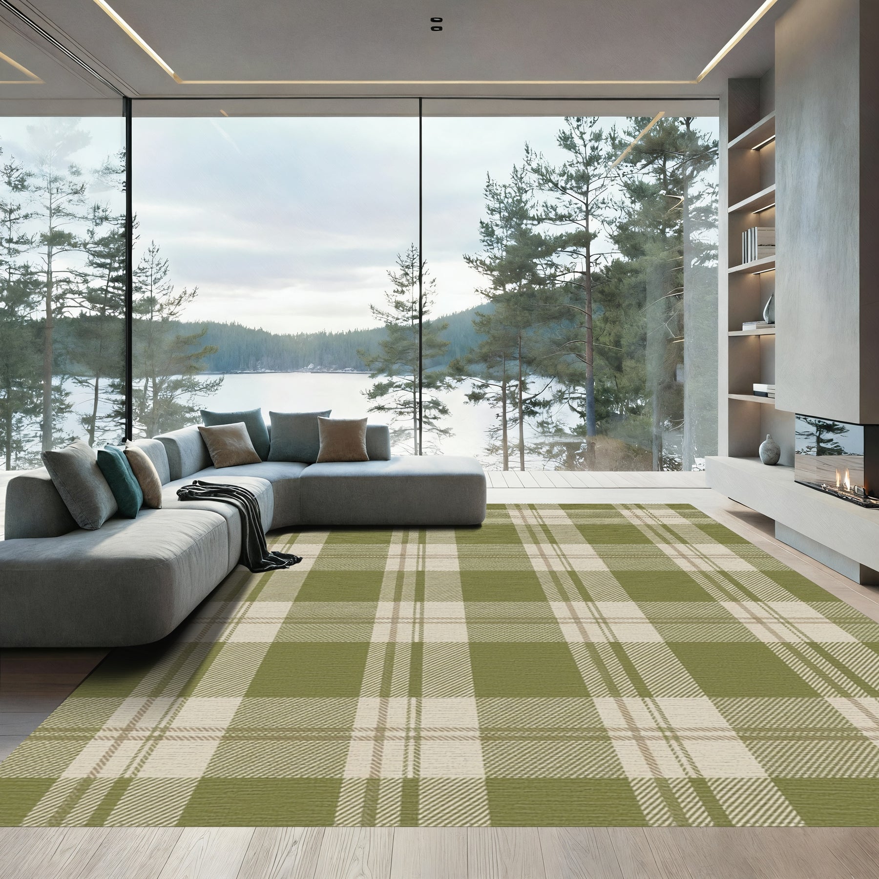 Flatwoven High Traffic Area Rug, Olive Tan Plaid Squares Rug, Non Slip, Stain Resistant, Washable Area Rugs for Living Room, Bedroom Overview: