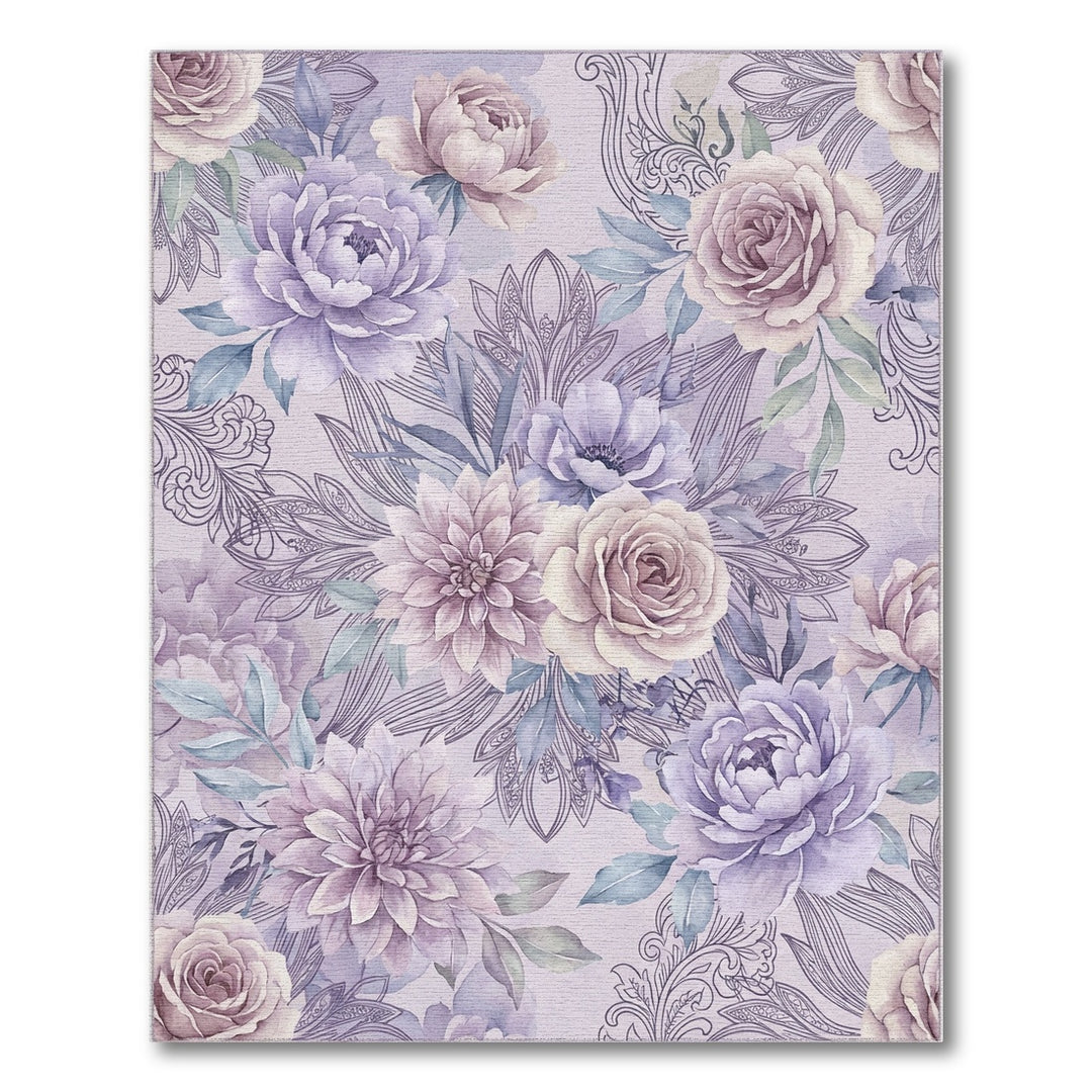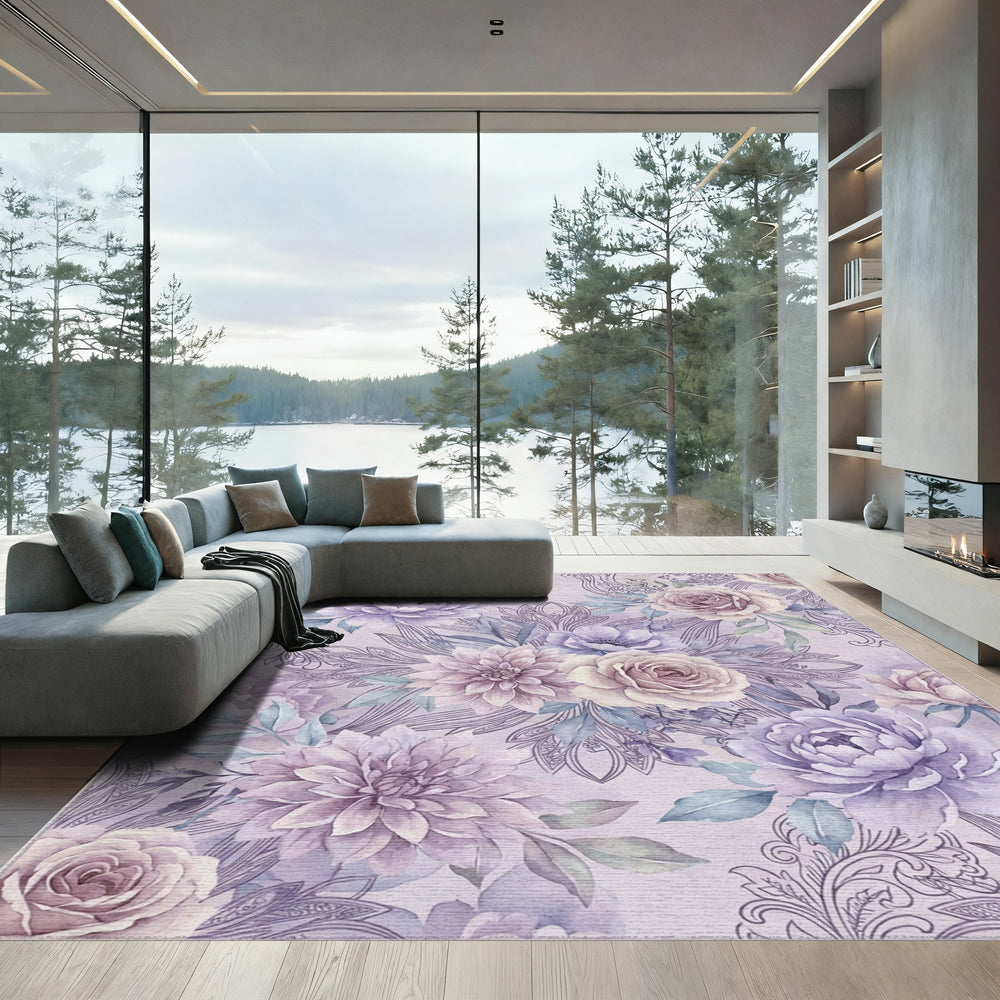 Soft Lavender Floral Scroll Artwork Rug