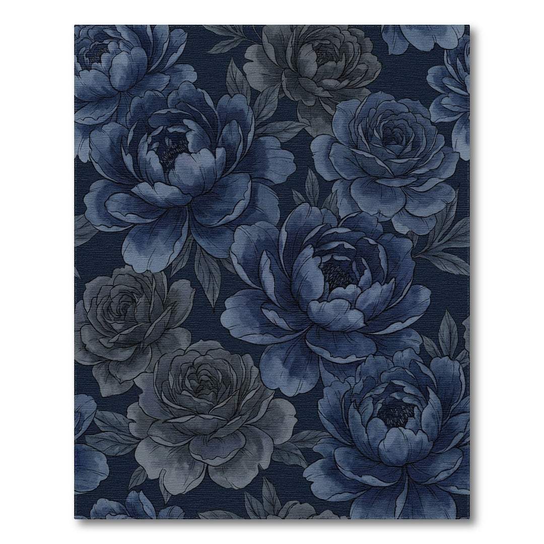 Deep Blue Floral Watercolor Garden Rug