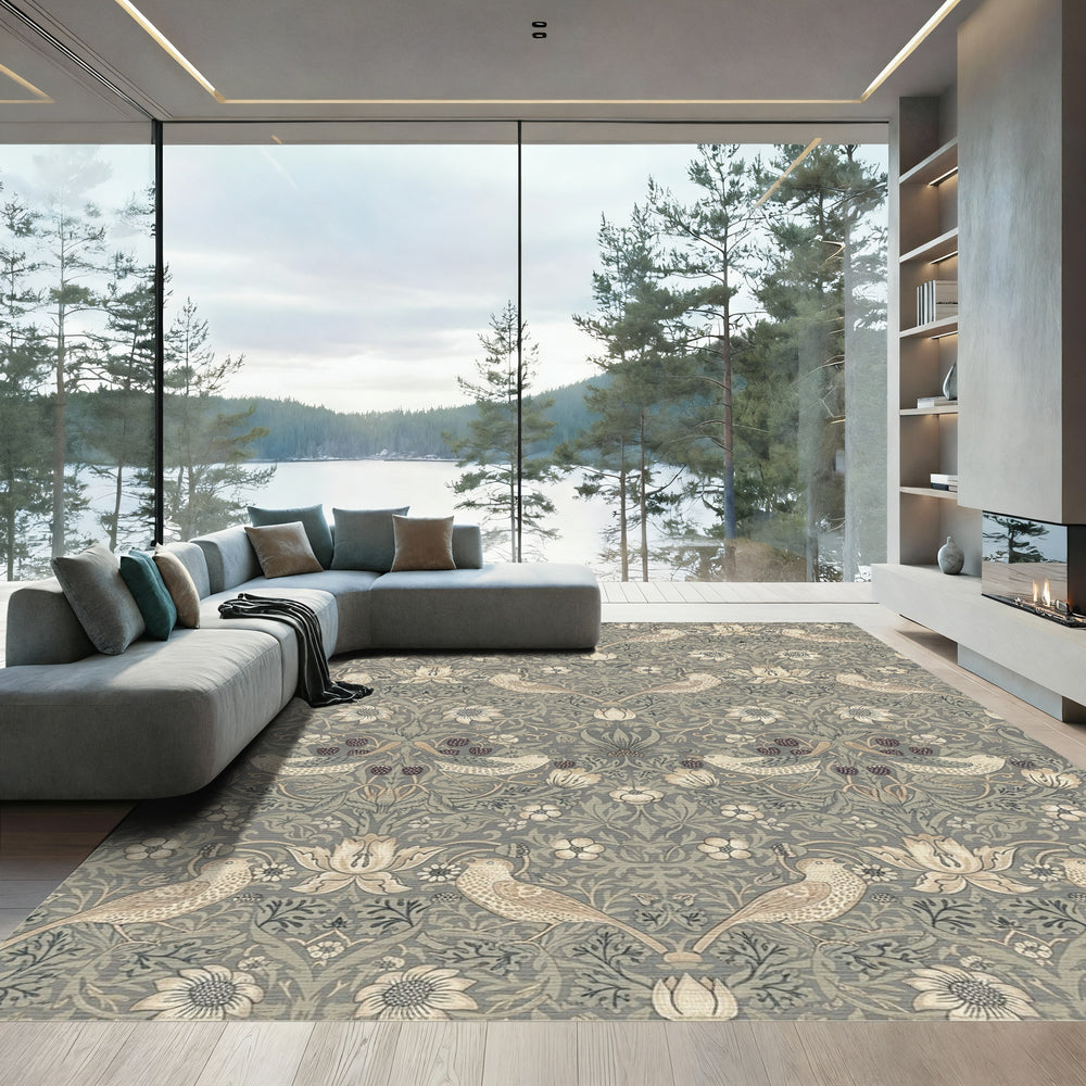 Nature Inspired Gray Bird Floral Rug