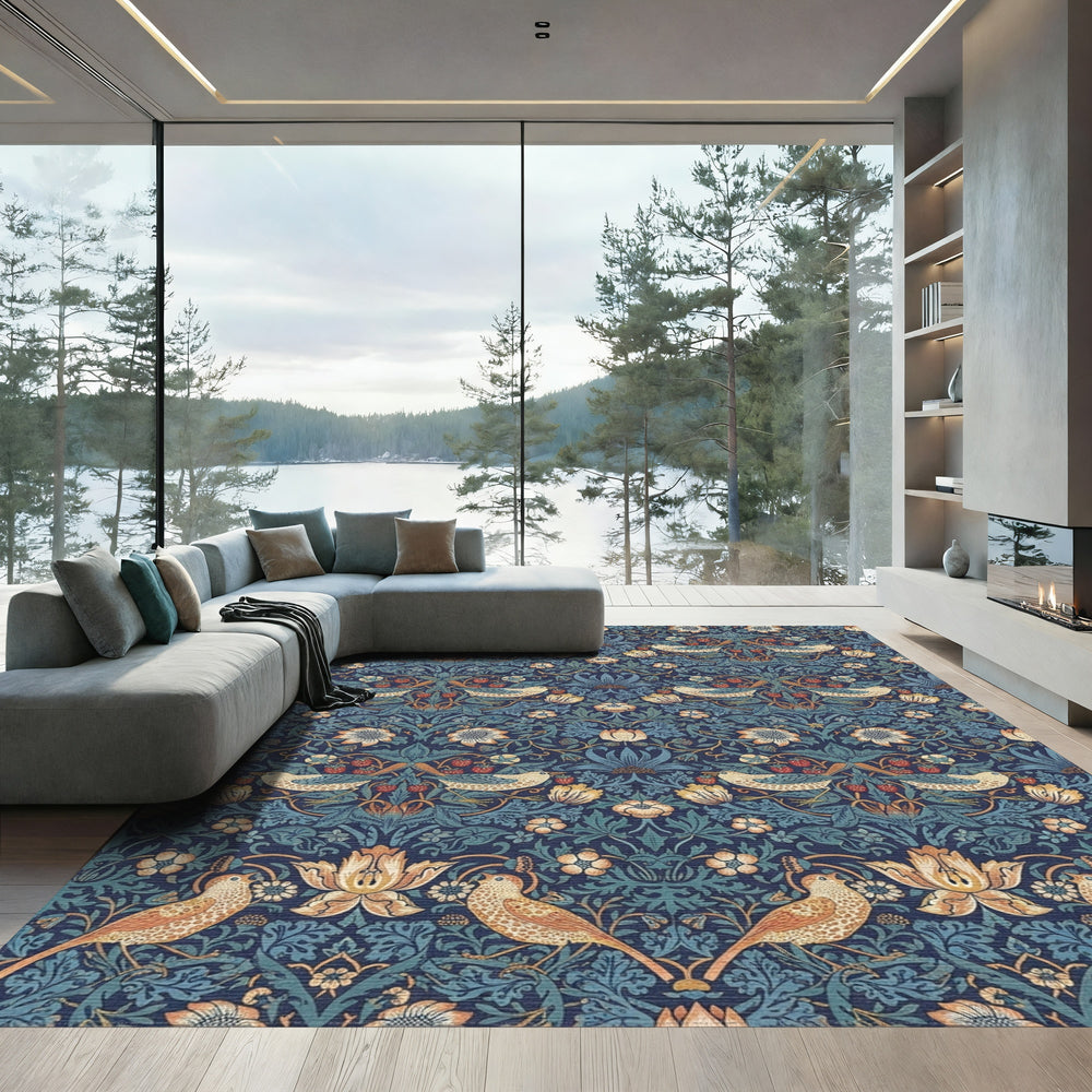 Indigo Birds and Strawberry Vines Rug