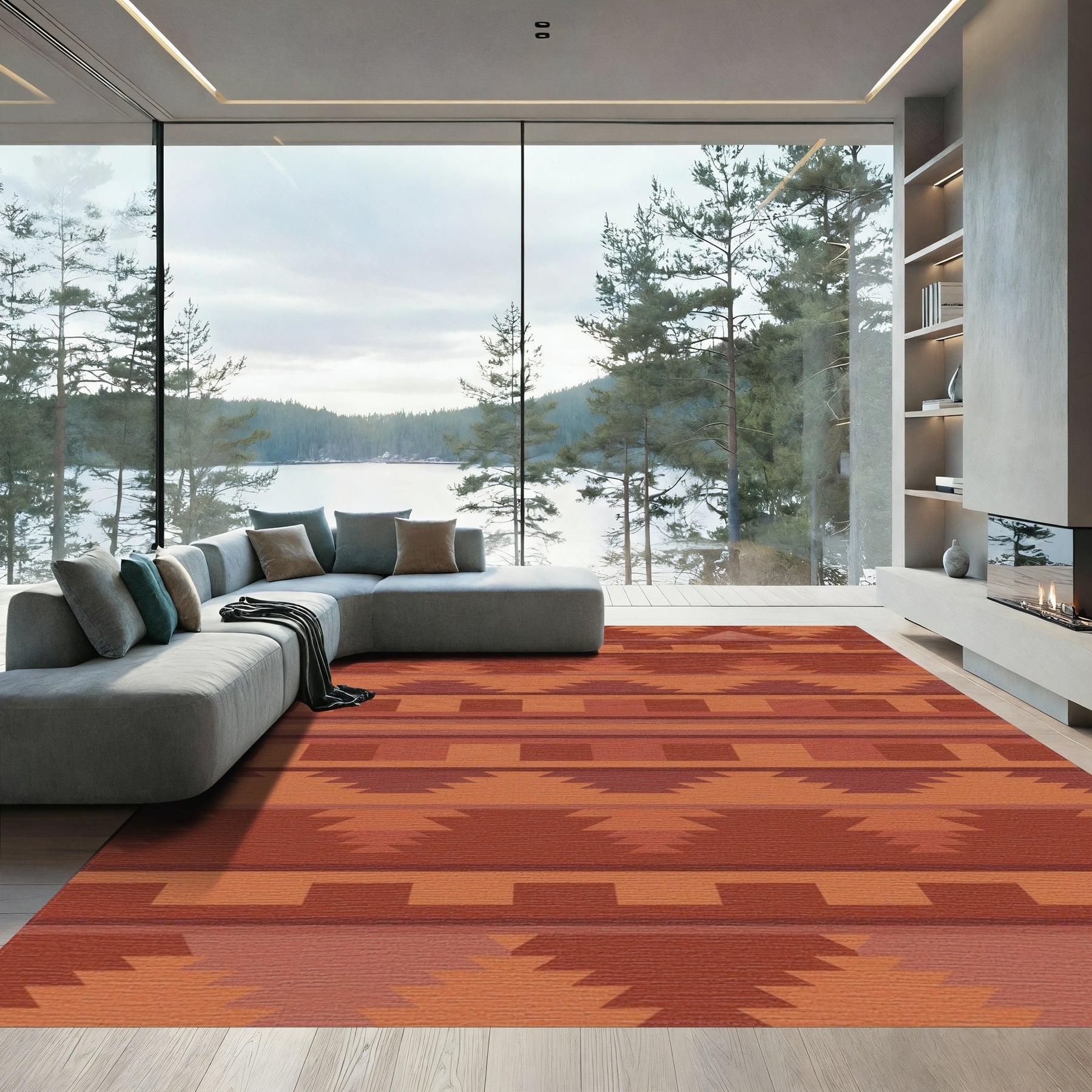 Flatwoven High Traffic Area Rug, Earthy Red Terracotta Geometric Stripe Rug, Non Slip, Stain Resistant, Washable Area Rugs for Living Room, Bedroom Overview: