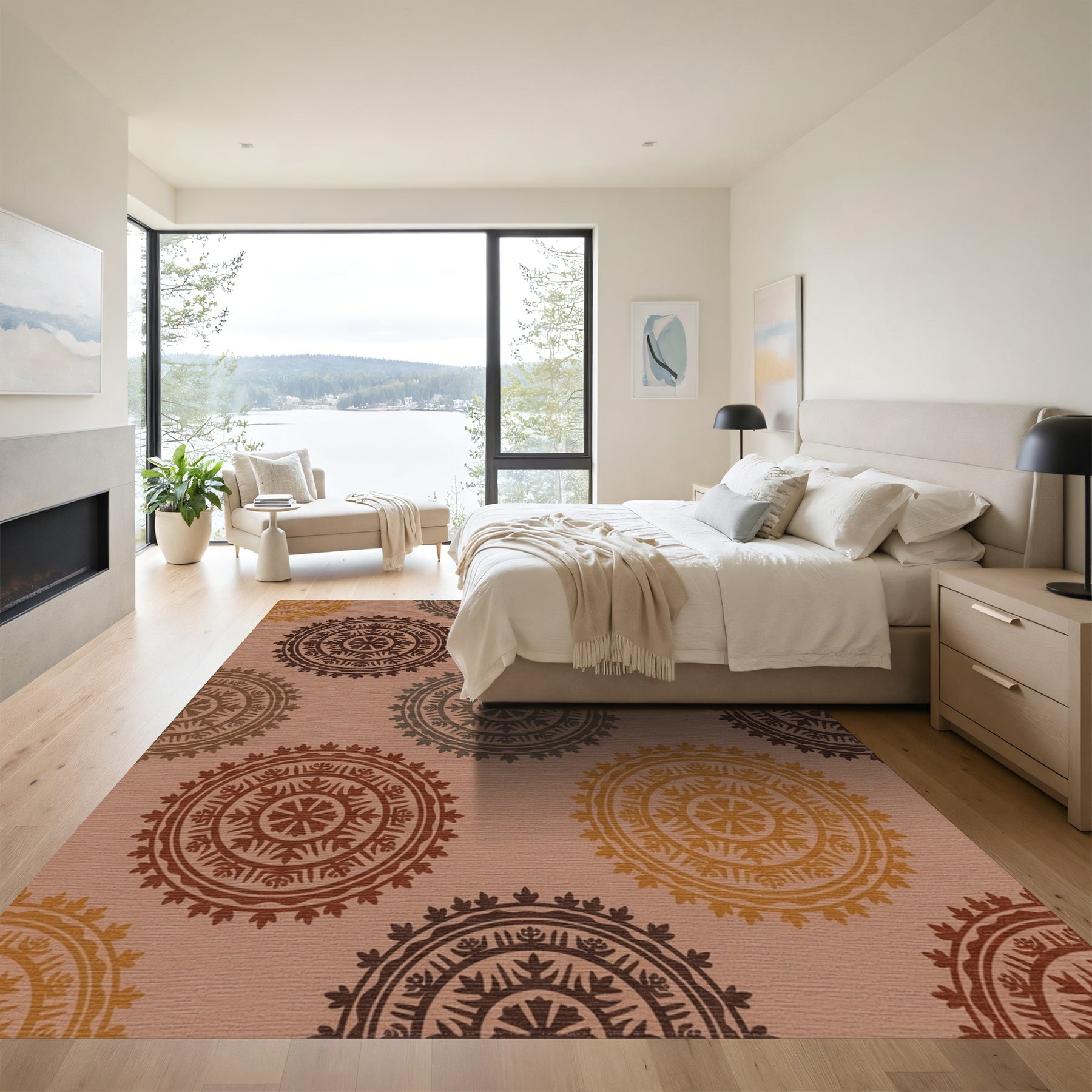 Flatwoven High Traffic Area Rug, Rustic Earthy Tone Mandala Rug, Non Slip, Stain Resistant, Washable Area Rugs for Living Room, Bedroom Overview: