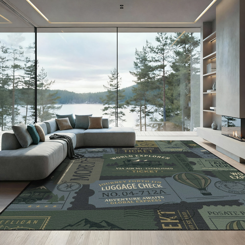 Vintage Travel Stamps World Explorer Rug