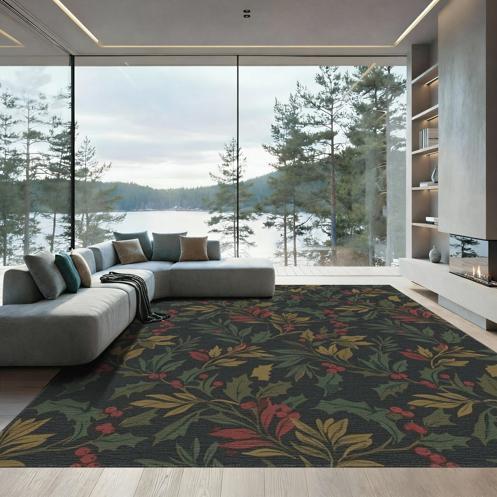Dark Holly Berry Botanical Vines Rug