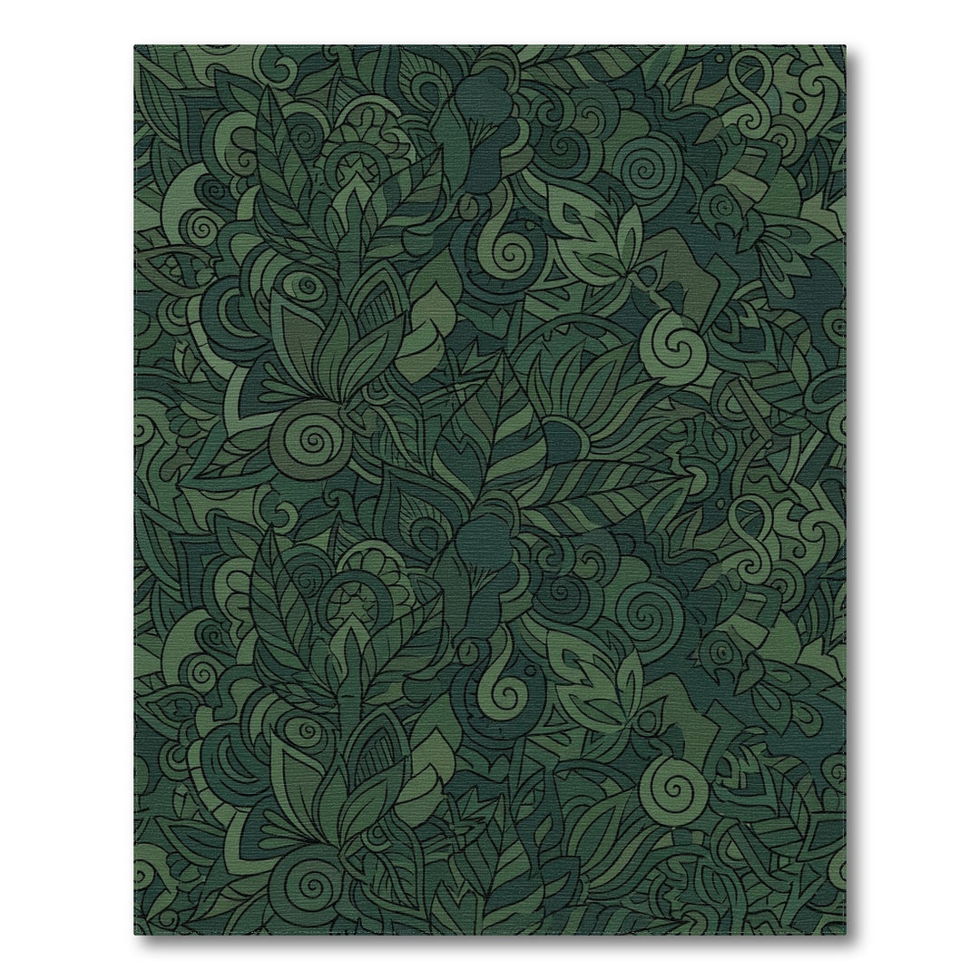 Earthy Green Lush Botanical Swirl Rug
