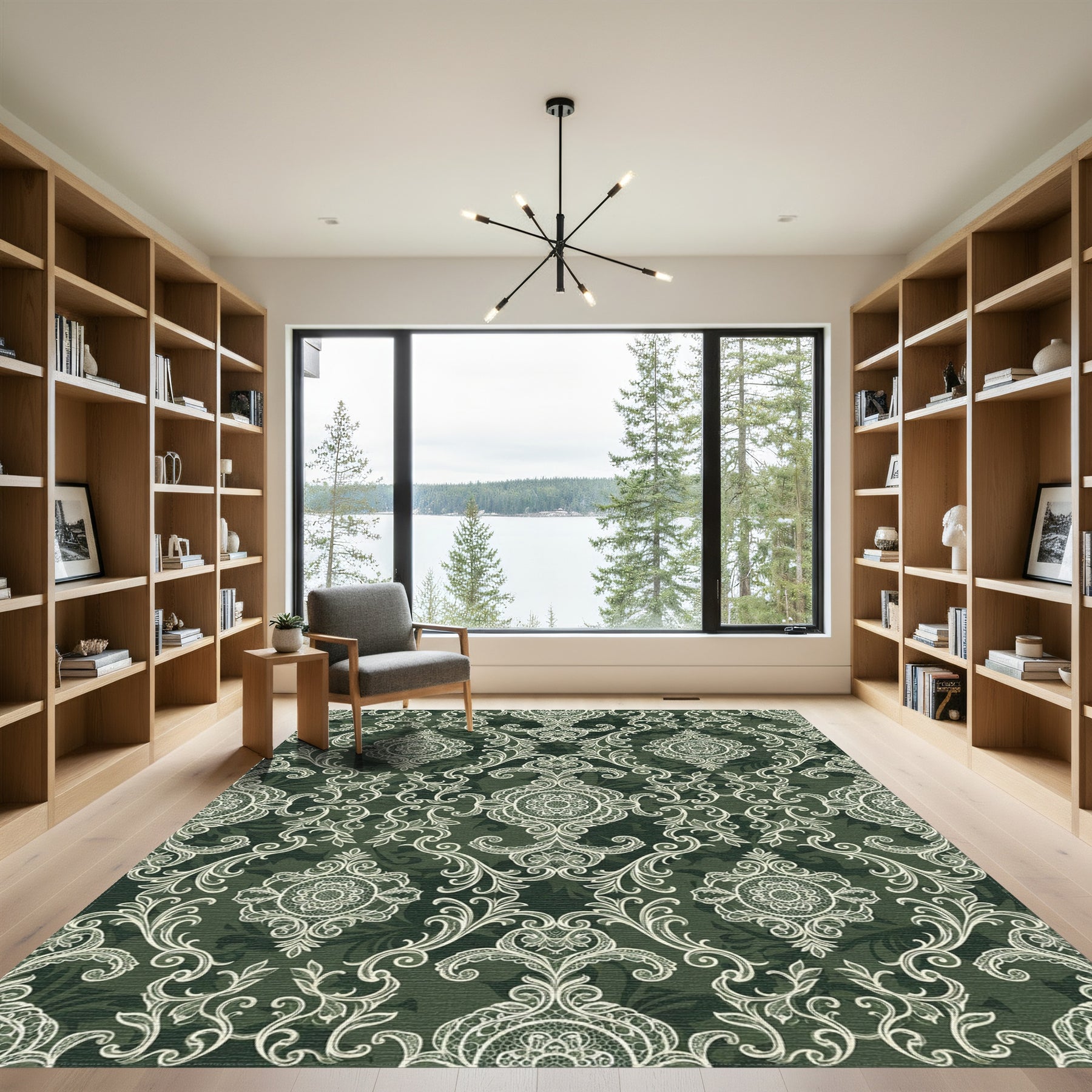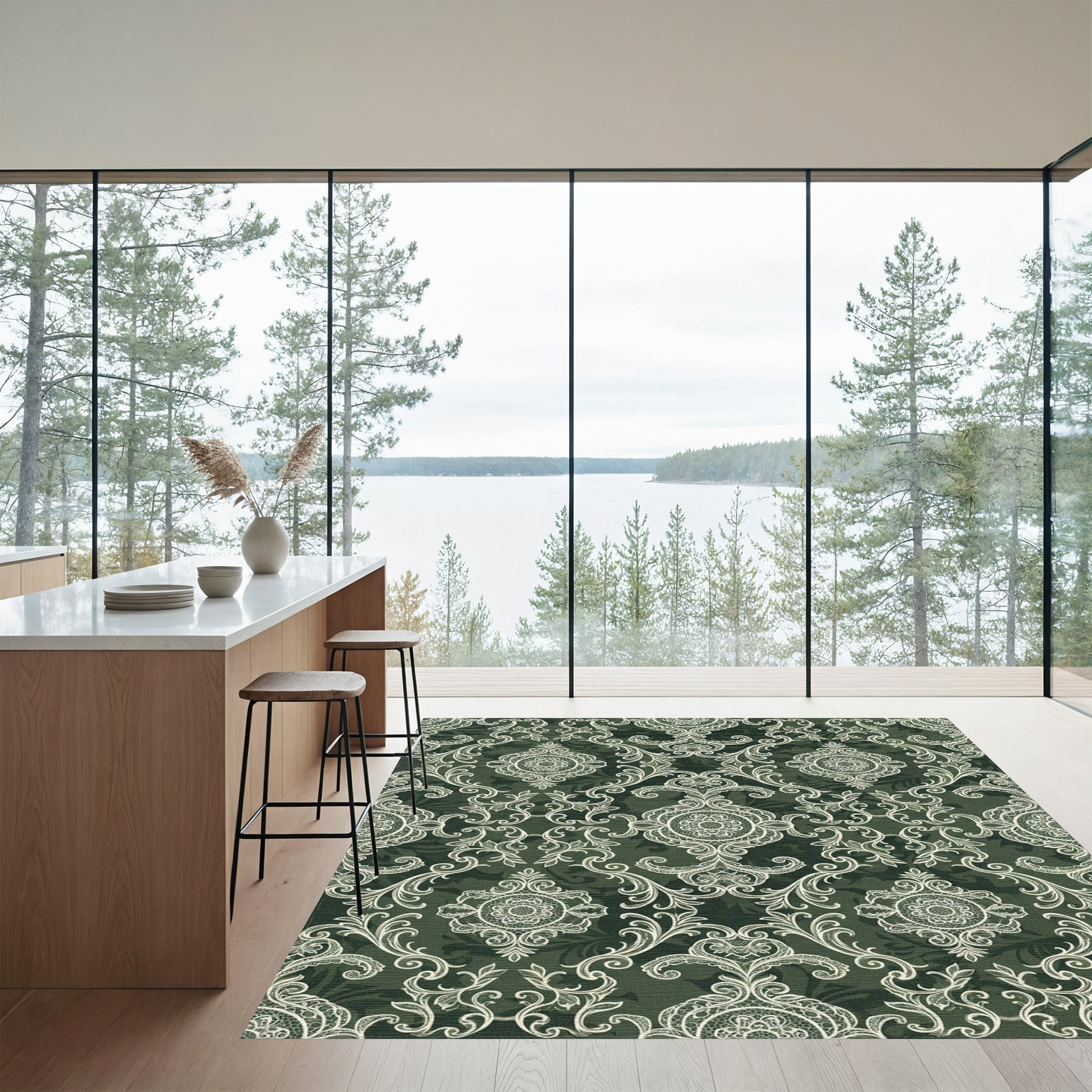 Flatwoven High Traffic Area Rug, Antique Lace Medallion Green Rug, Non Slip, Stain Resistant, Washable Area Rugs for Living Room, Bedroom Overview:
