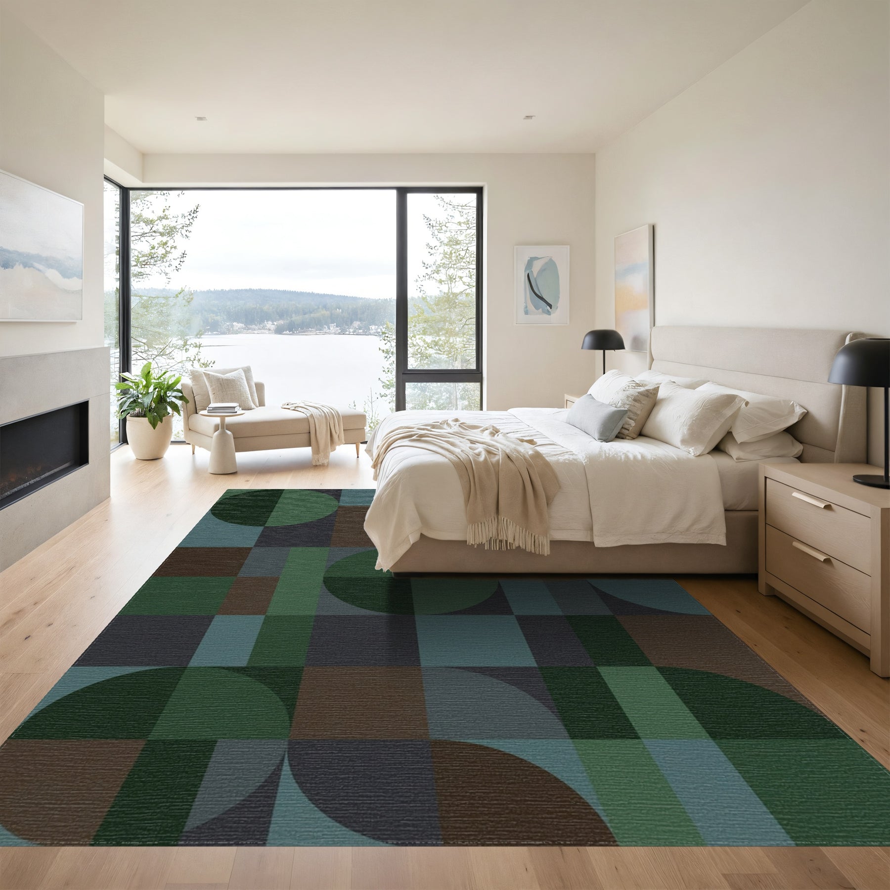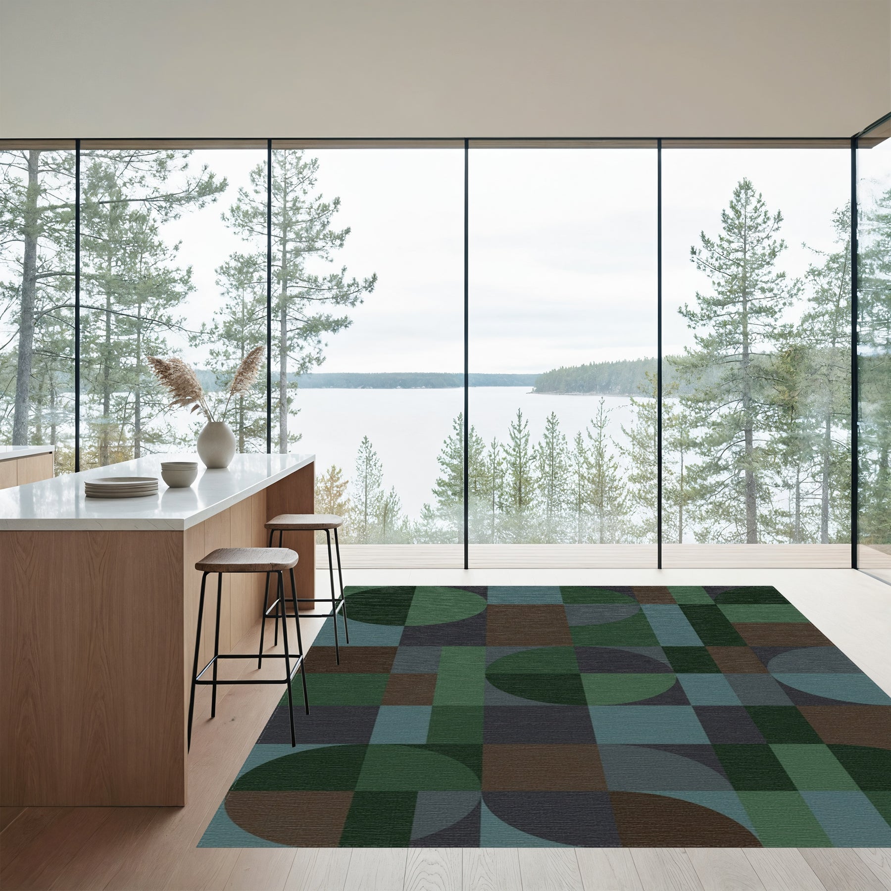 Flatwoven High Traffic Area Rug, Earthy Geometric Circles and Squares Rug, Non Slip, Stain Resistant, Washable Area Rugs for Living Room, Bedroom Overview: