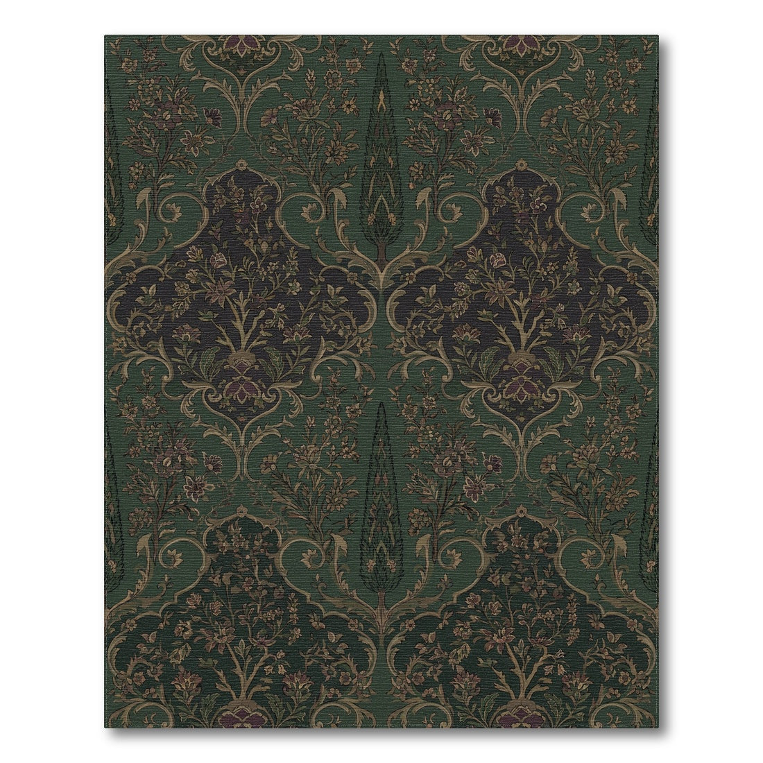 Flatwoven High Traffic Area Rug, Emerald Green Floral Tree Arch Rug, Non Slip, Stain Resistant, Washable Area Rugs for Living Room, Bedroom Overview: