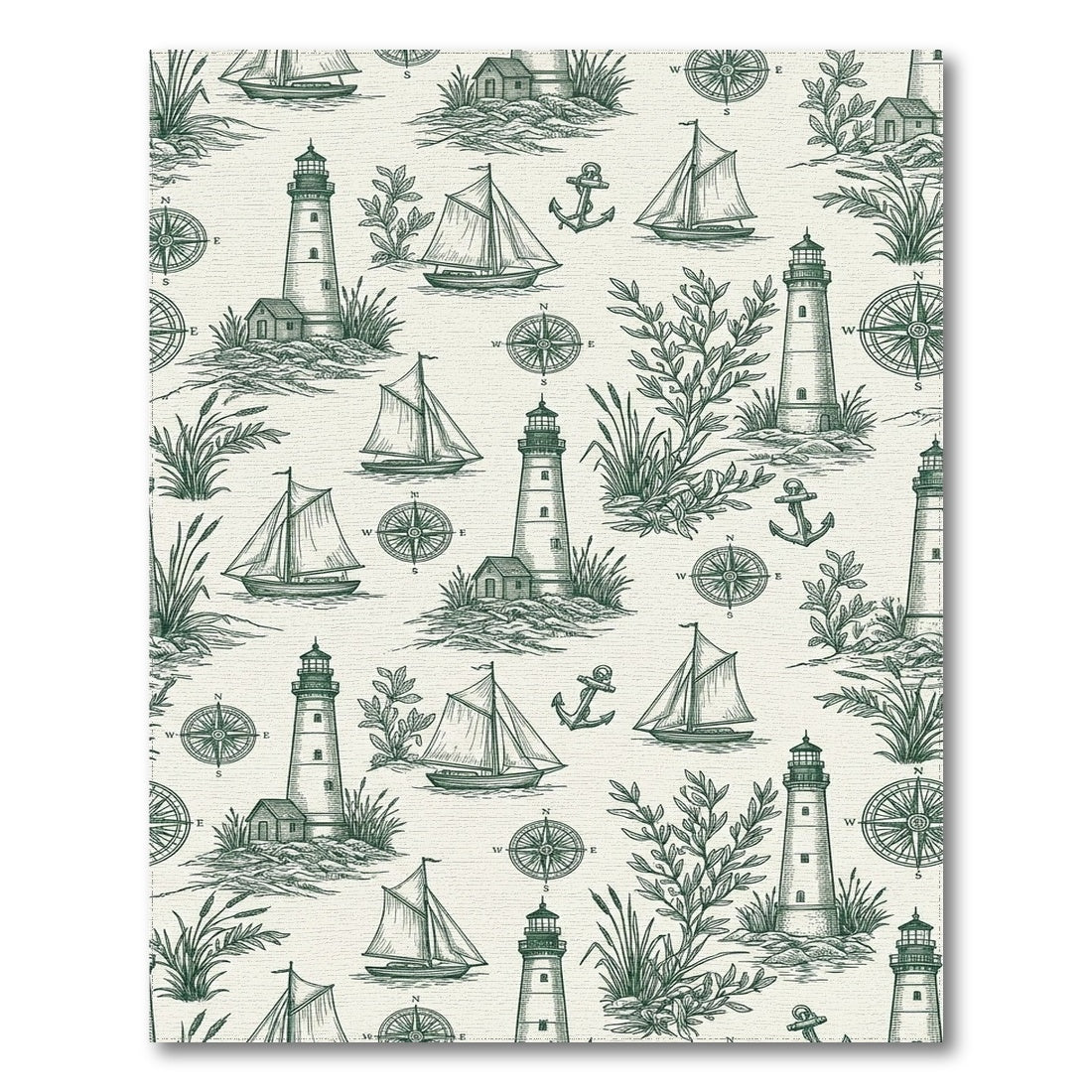 Nautical Scene Lighthouses Sailboats Compasses Anchor Rug