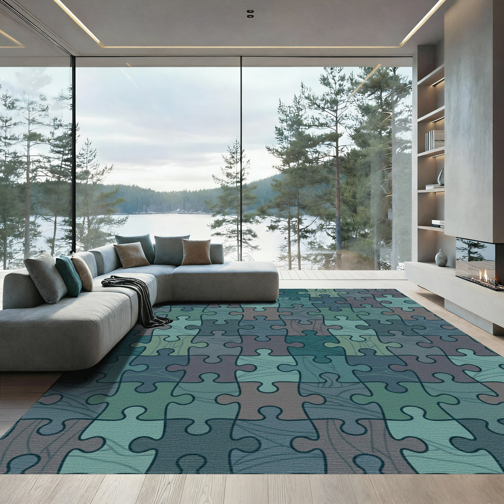 Earthy Blue Puzzle Pieces Rug
