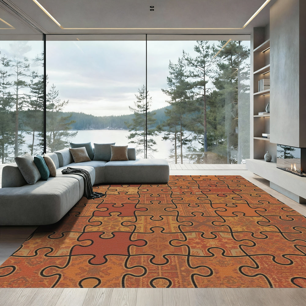 Golden Jigsaw Puzzle Tile Arrangement Rug