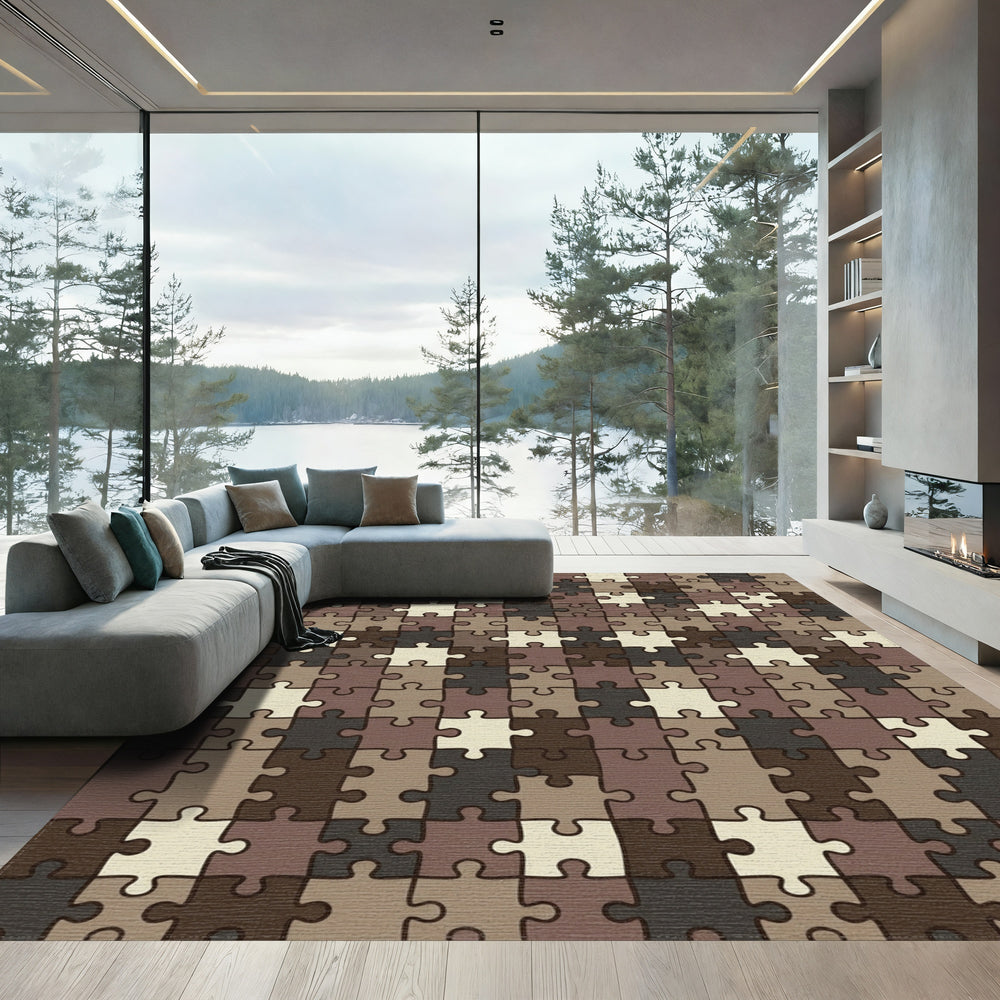 Neutral Tones Puzzle Pieces Rug