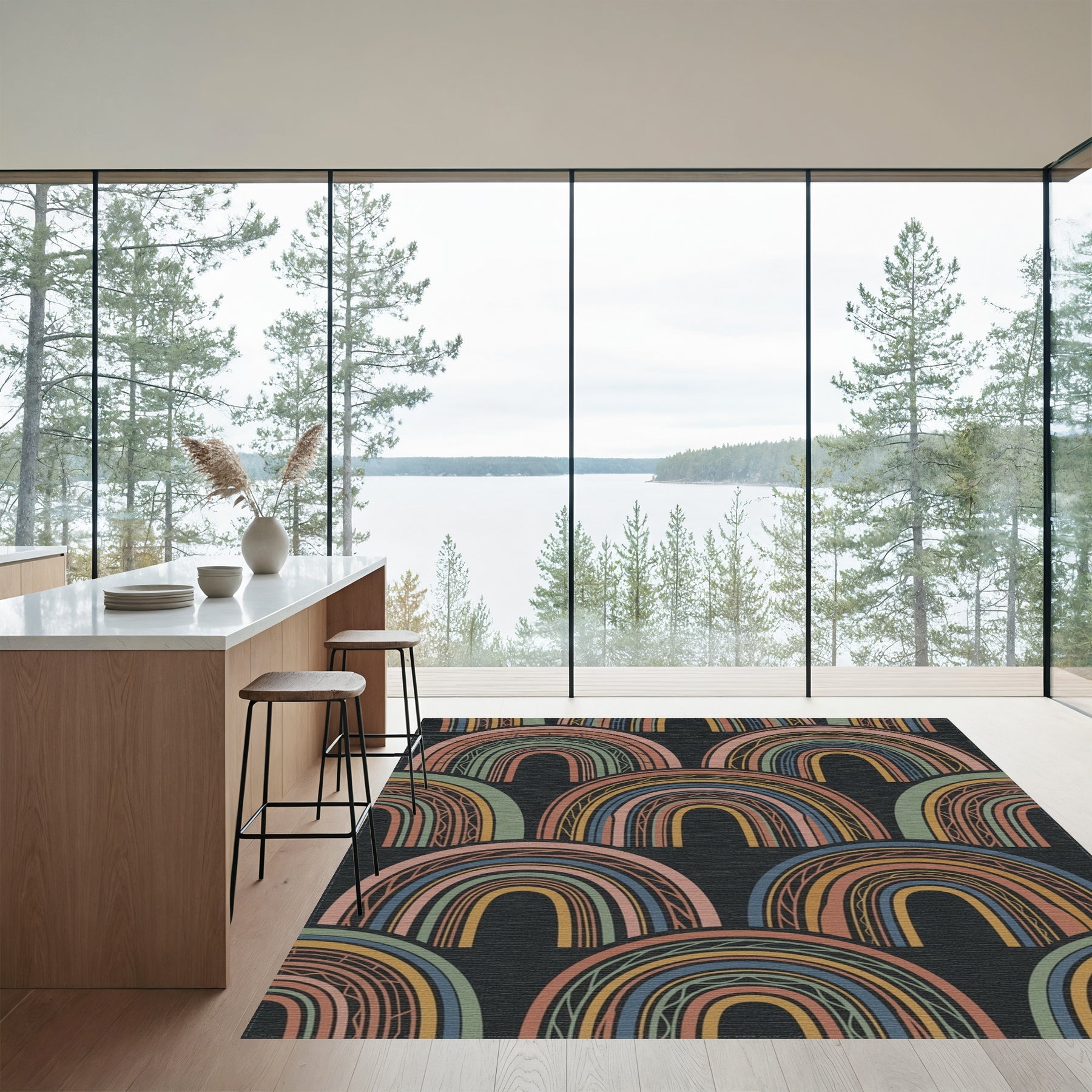 Flatwoven High Traffic Area Rug, Boho Rainbow Earthy Pastel Rug, Non Slip, Stain Resistant, Washable Area Rugs for Living Room, Bedroom Overview:
