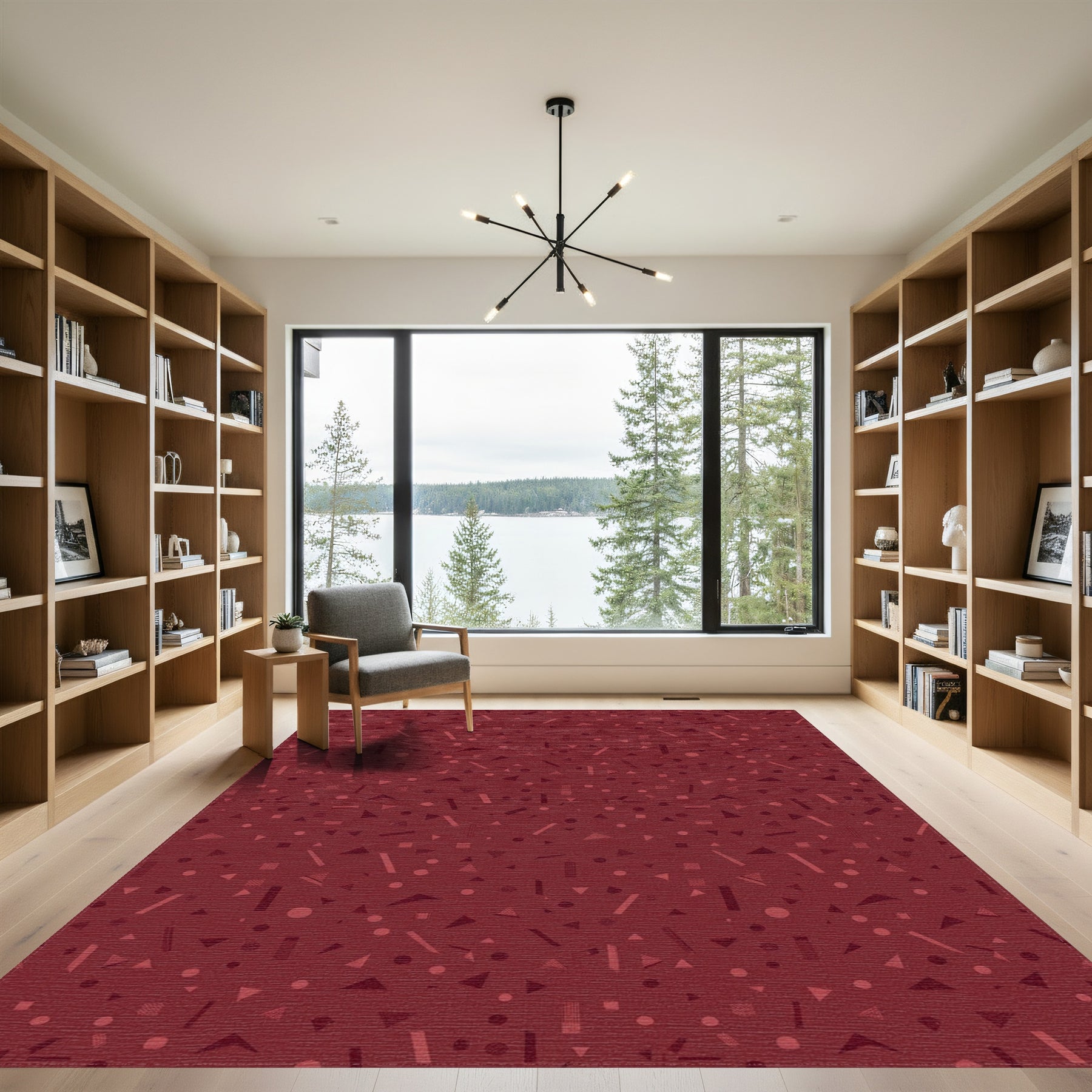 Flatwoven High Traffic Area Rug, Deep Burgundy Geometric Confetti Scatter Rug, Non Slip, Stain Resistant, Washable Area Rugs for Living Room, Bedroom Overview: