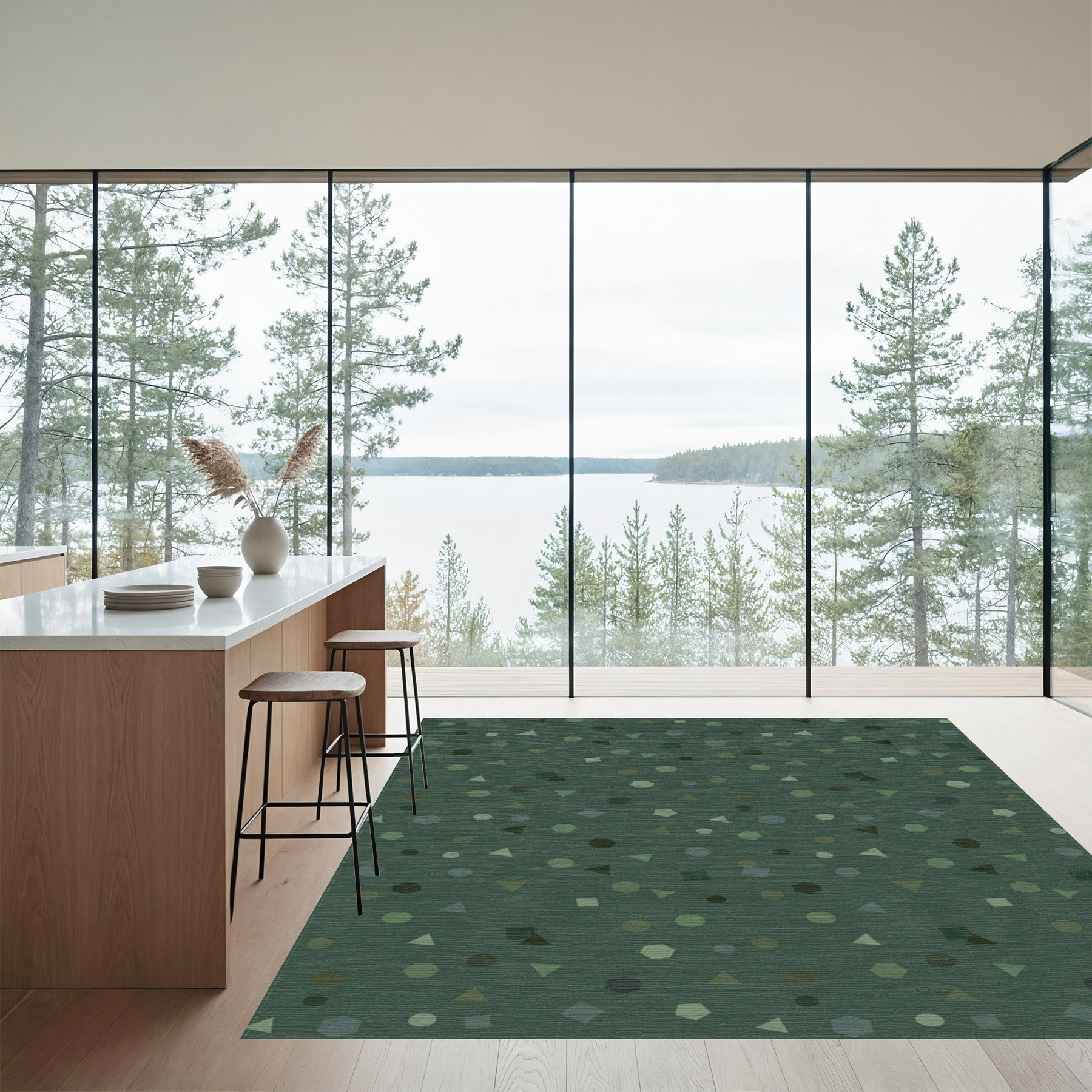 Flatwoven High Traffic Area Rug, Earthy Tones Scattered Geometric Collage Rug, Non Slip, Stain Resistant, Washable Area Rugs for Living Room, Bedroom Overview: