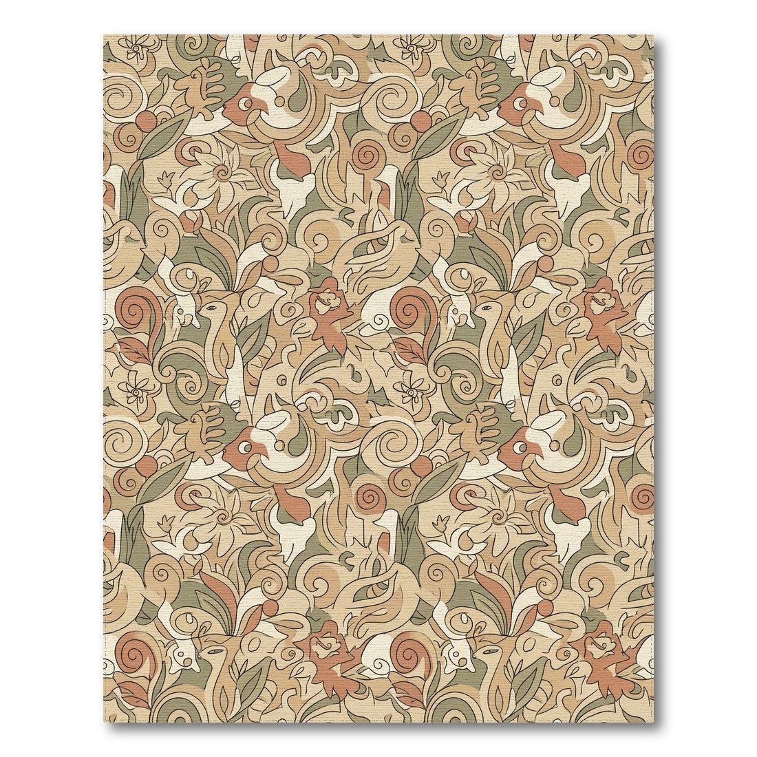 Flatwoven High Traffic Area Rug, Earthy Tones Whimsical Woodland Creatures Rug, Non Slip, Stain Resistant, Washable Area Rugs for Living Room, Bedroom Overview: