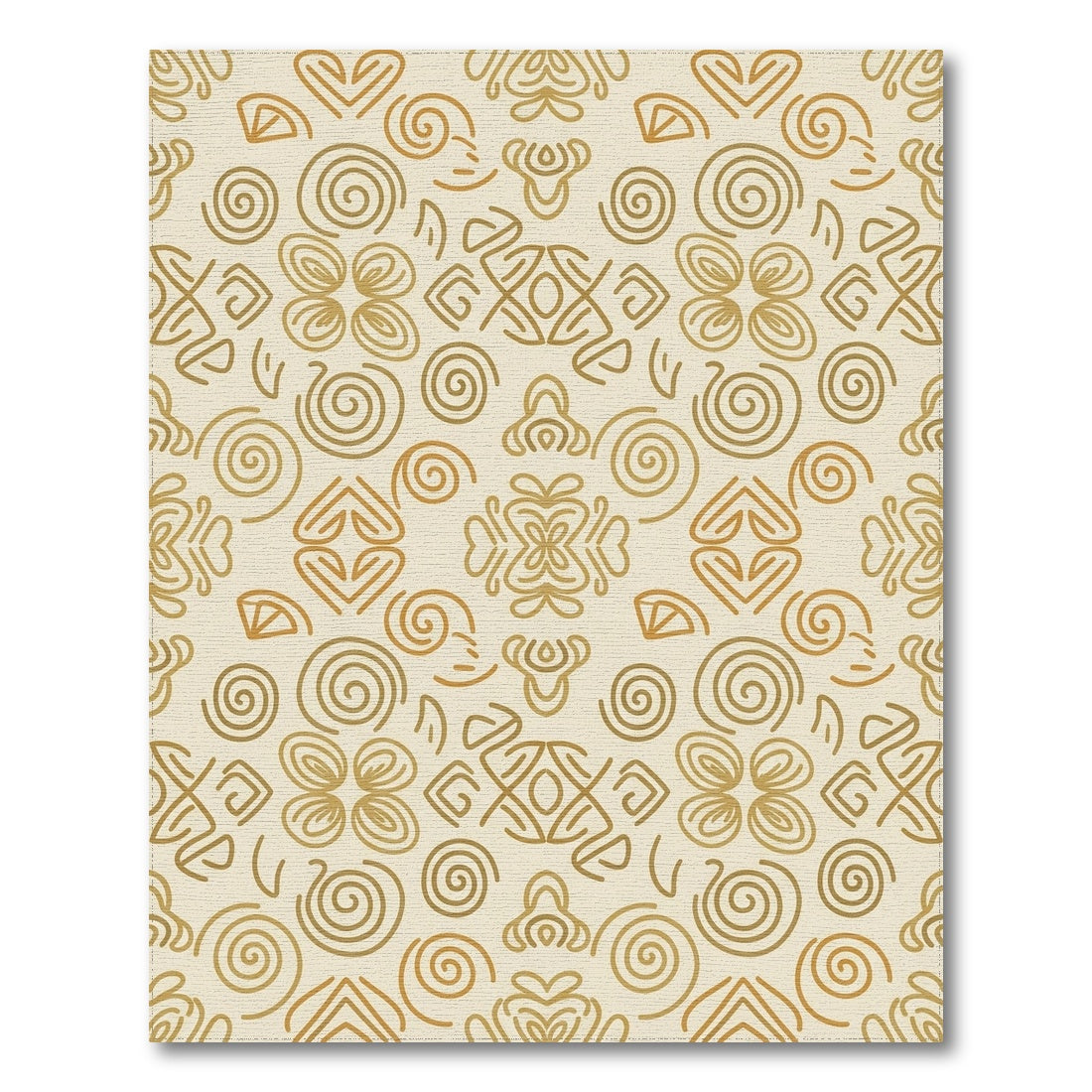 Flatwoven High Traffic Area Rug, Golden Abstract Swirl and Bloom Rug, Non Slip, Stain Resistant, Washable Area Rugs for Living Room, Bedroom Overview: