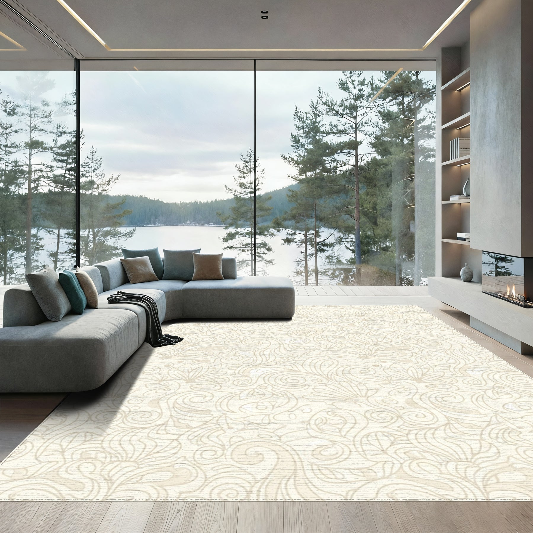 Flatwoven High Traffic Area Rug, Ivory Floral Swirl Abstract Rug, Non Slip, Stain Resistant, Washable Area Rugs for Living Room, Bedroom Overview: