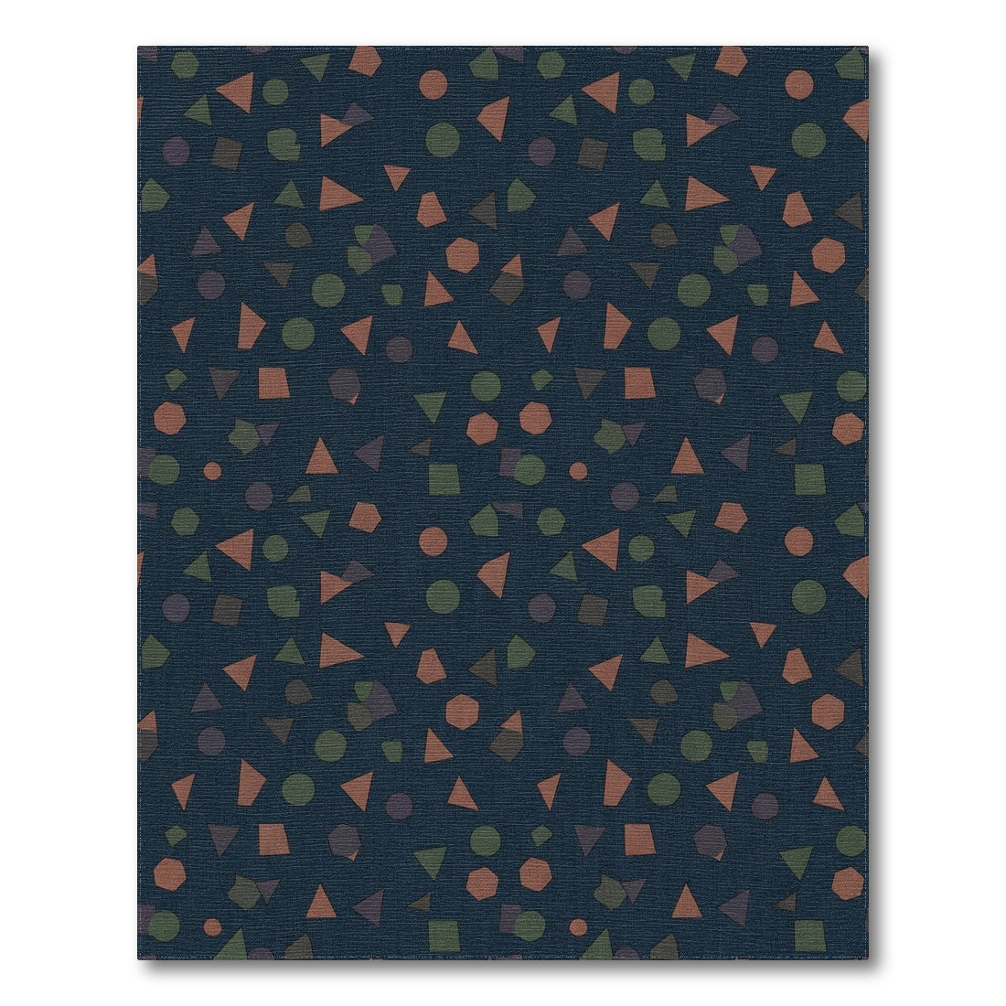 Flatwoven High Traffic Area Rug, Muted Geometric Shapes Scattered Navy Rug, Non Slip, Stain Resistant, Washable Area Rugs for Living Room, Bedroom Overview: