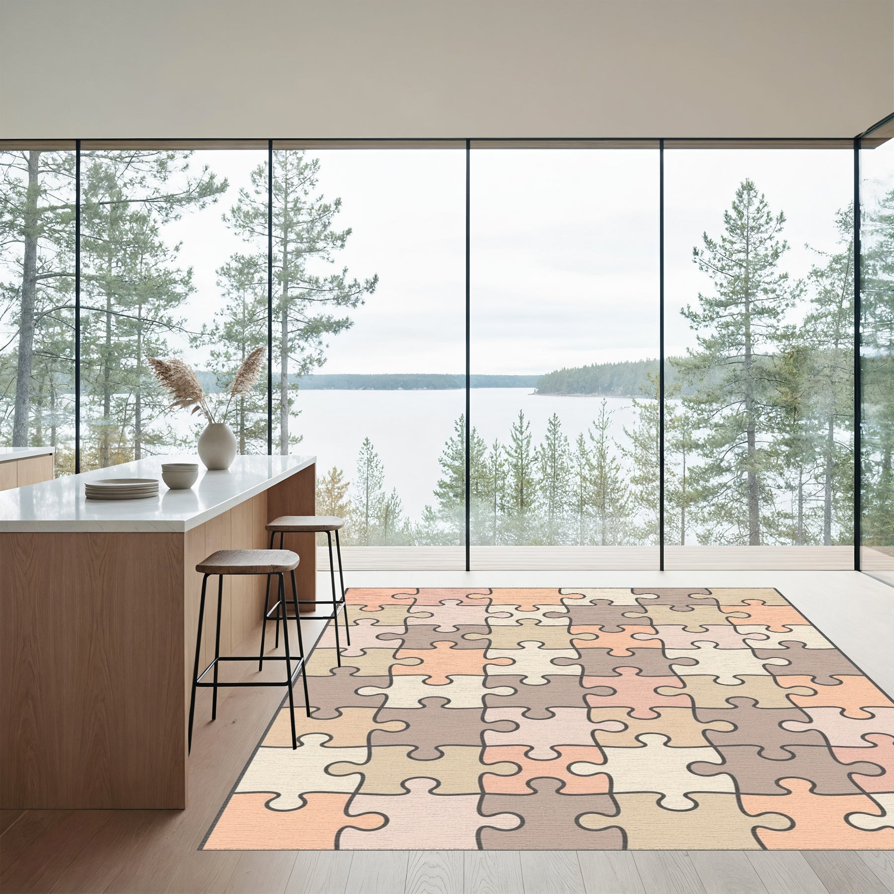 Flatwoven High Traffic Area Rug, Neutral Tones Puzzle Pieces Rug, Non Slip, Stain Resistant, Washable Area Rugs for Living Room, Bedroom Overview: