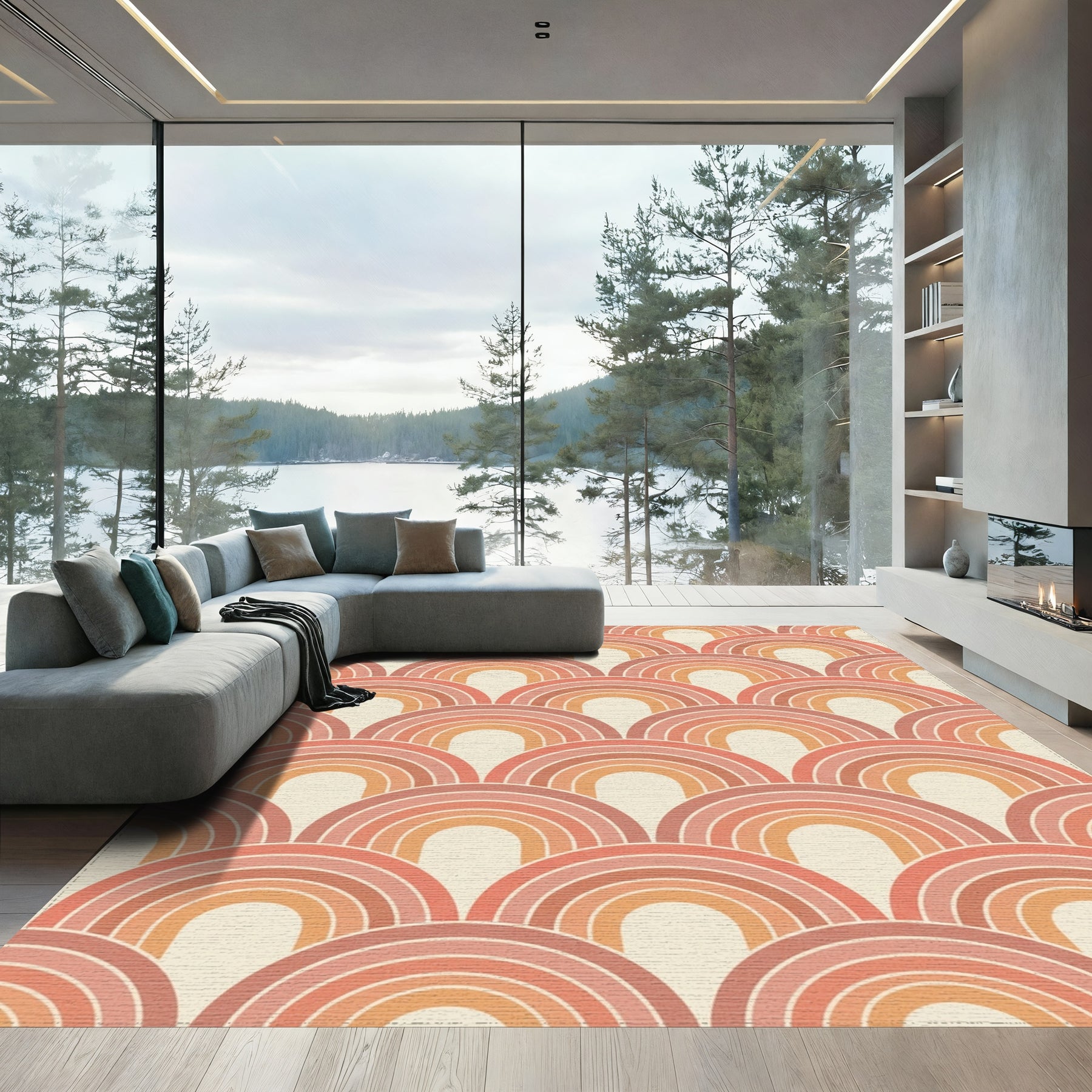 Flatwoven High Traffic Area Rug, Retro Warm Tone Arc Rainbow Rug, Non Slip, Stain Resistant, Washable Area Rugs for Living Room, Bedroom Overview: