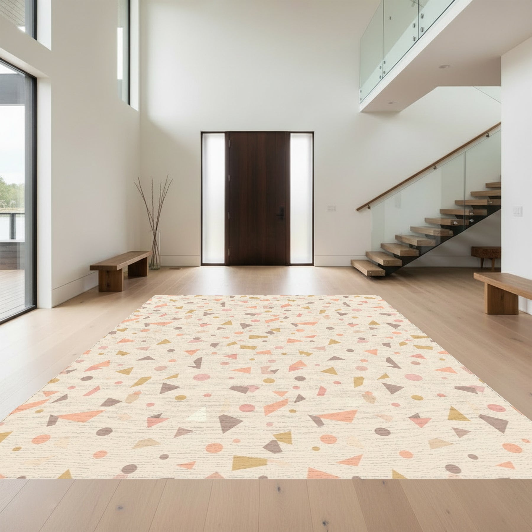 Flatwoven High Traffic Area Rug, Soft Pastel Terrazzo Shapes Rug, Non Slip, Stain Resistant, Washable Area Rugs for Living Room, Bedroom Overview: