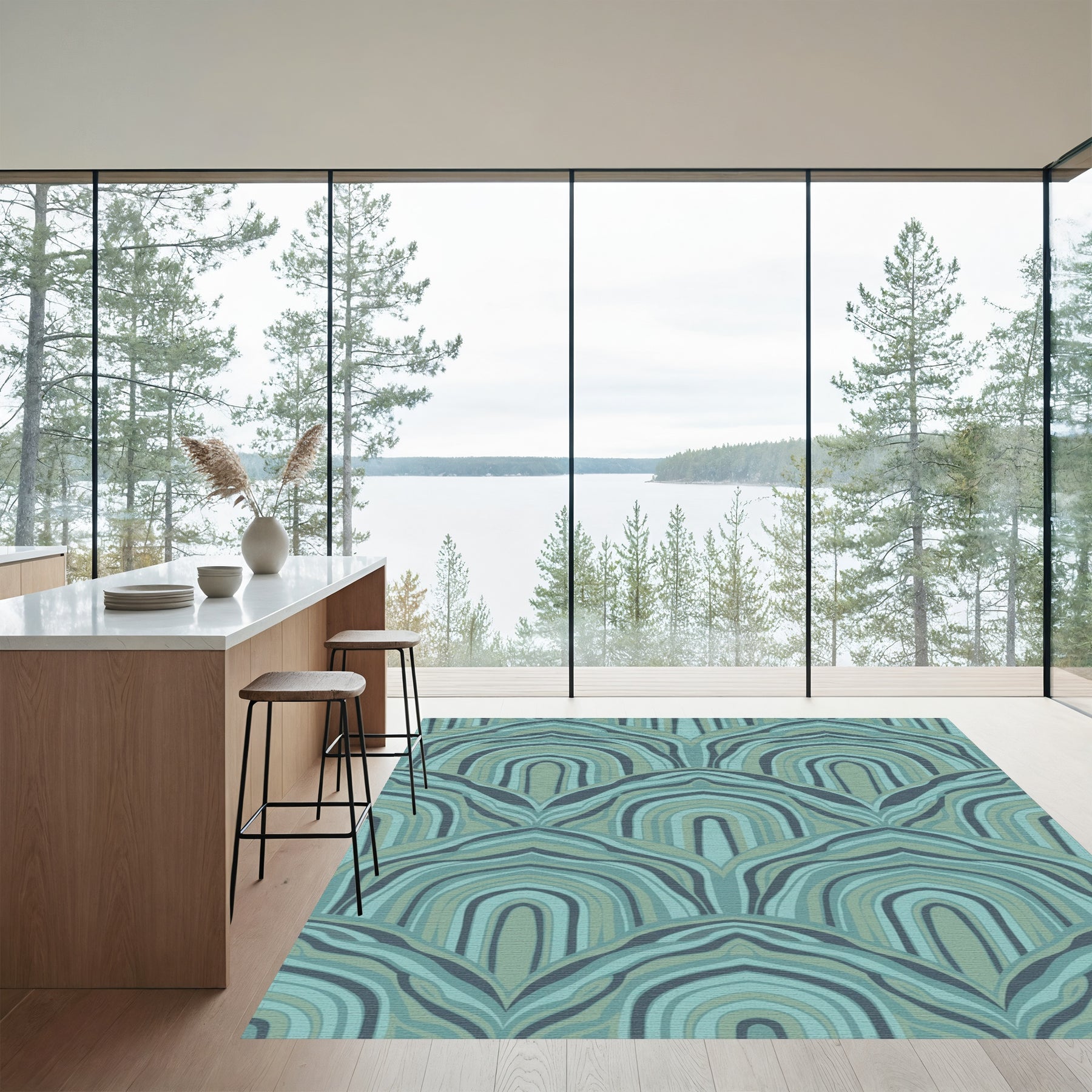 Flatwoven High Traffic Area Rug, Teal Blue Agate Arch Repeat Rug, Non Slip, Stain Resistant, Washable Area Rugs for Living Room, Bedroom Overview: