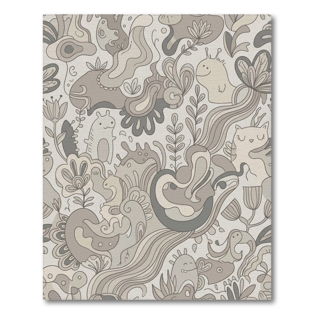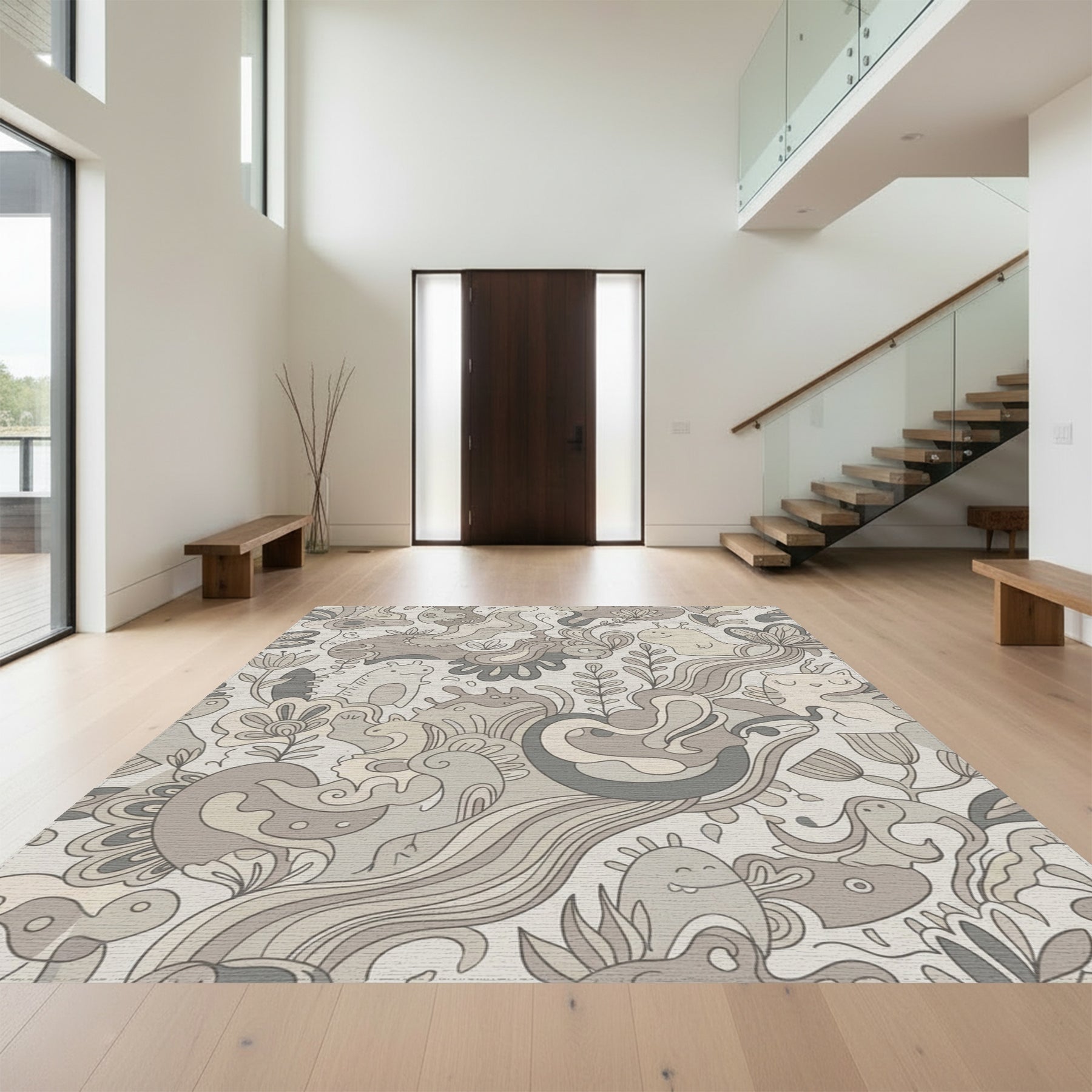 Flatwoven High Traffic Area Rug, Whimsical Neutral Creature Garden Rug, Non Slip, Stain Resistant, Washable Area Rugs for Living Room, Bedroom Overview: