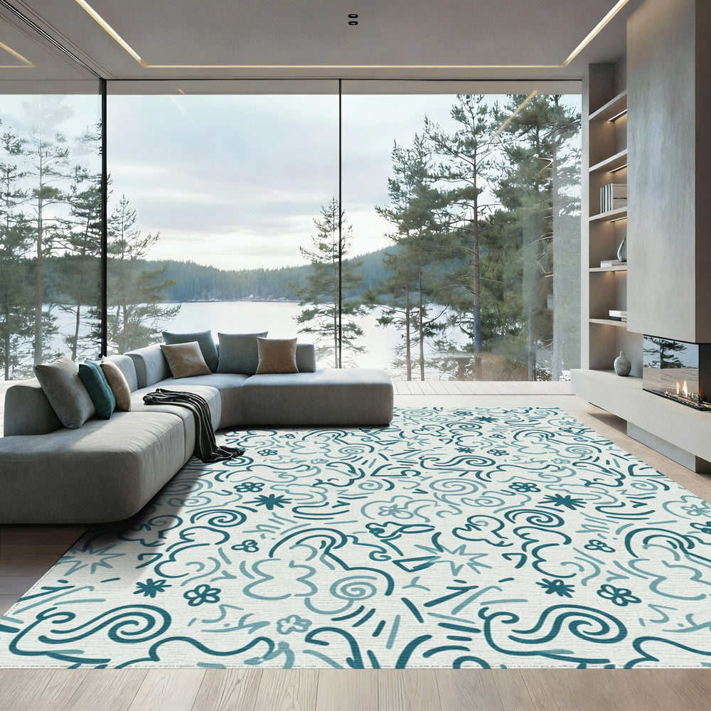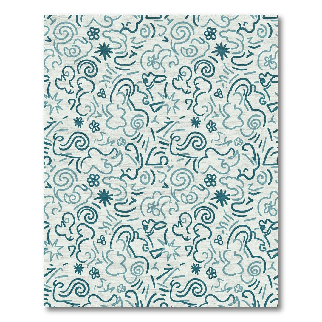 Teal Swirls and Stars Abstract Rug