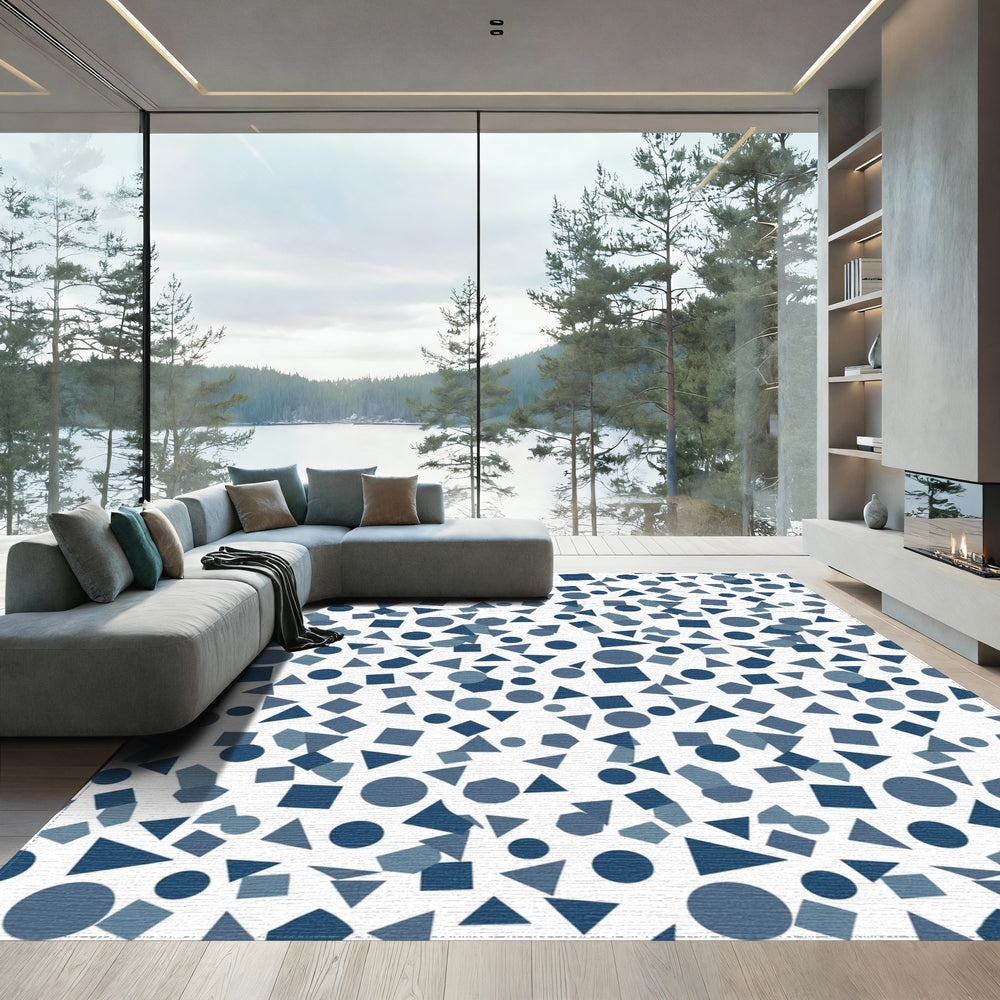 Dark Blue Geometric Shapes Collage Rug