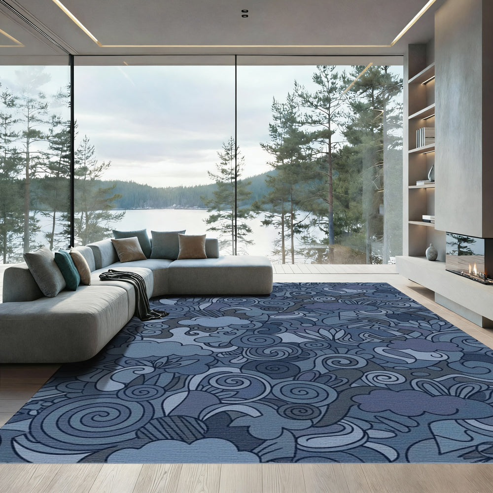 Moody Blue Abstract Swirl Clouds Rug