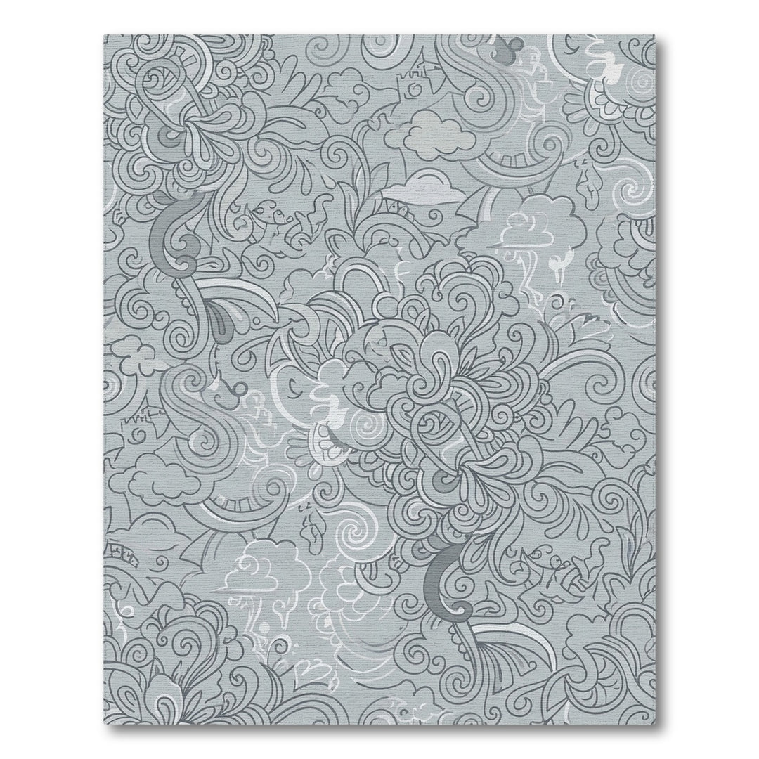 Whimsical Gray Cloud Foliage Swirl Rug