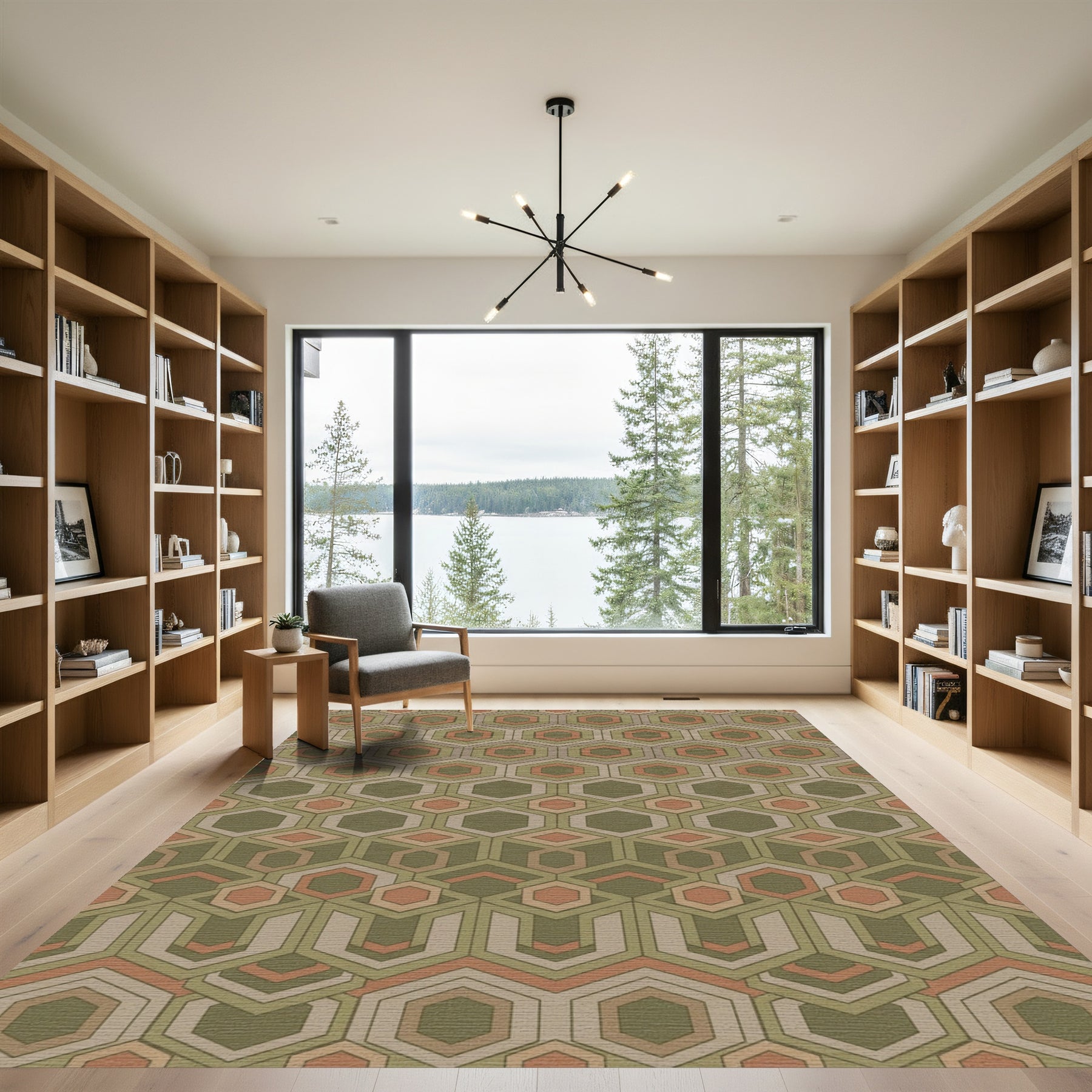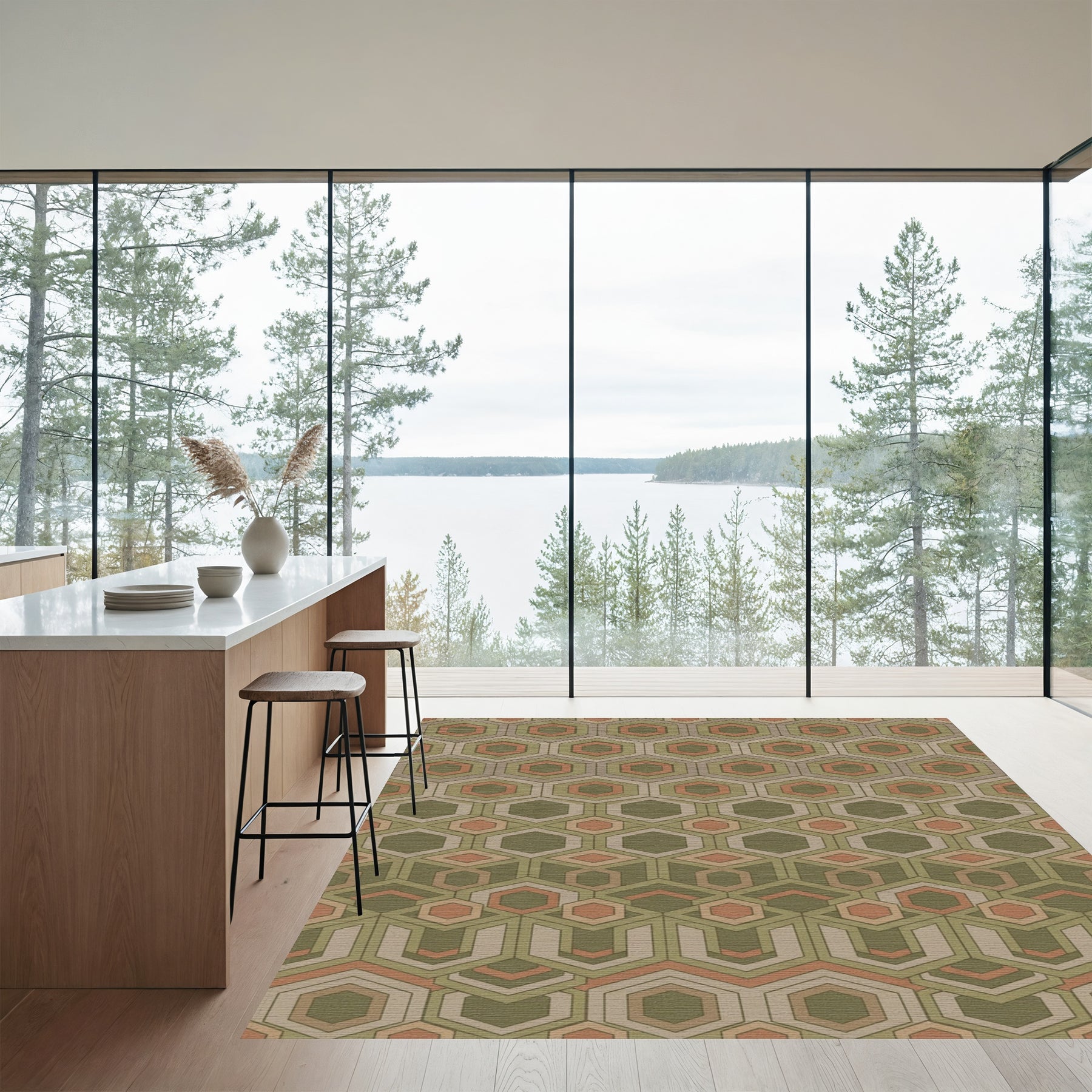 Flatwoven High Traffic Area Rug, Copper And Olive Geometric Hexagon Rug, Non Slip, Stain Resistant, Washable Area Rugs for Living Room, Bedroom Overview: