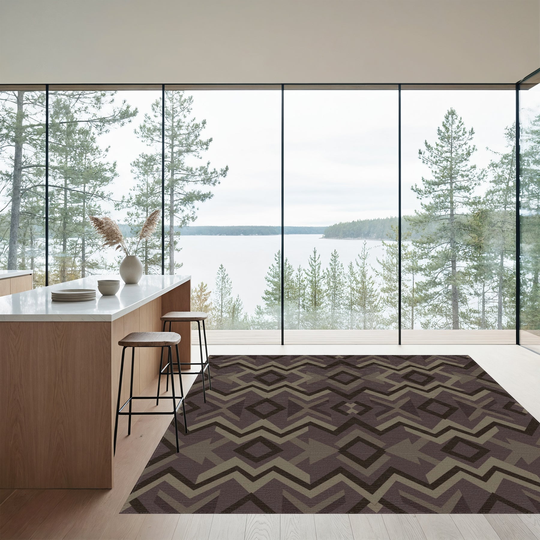 Flatwoven High Traffic Area Rug, Earthy Tone Geometric Diamond Zigzag Rug, Non Slip, Stain Resistant, Washable Area Rugs for Living Room, Bedroom Overview: