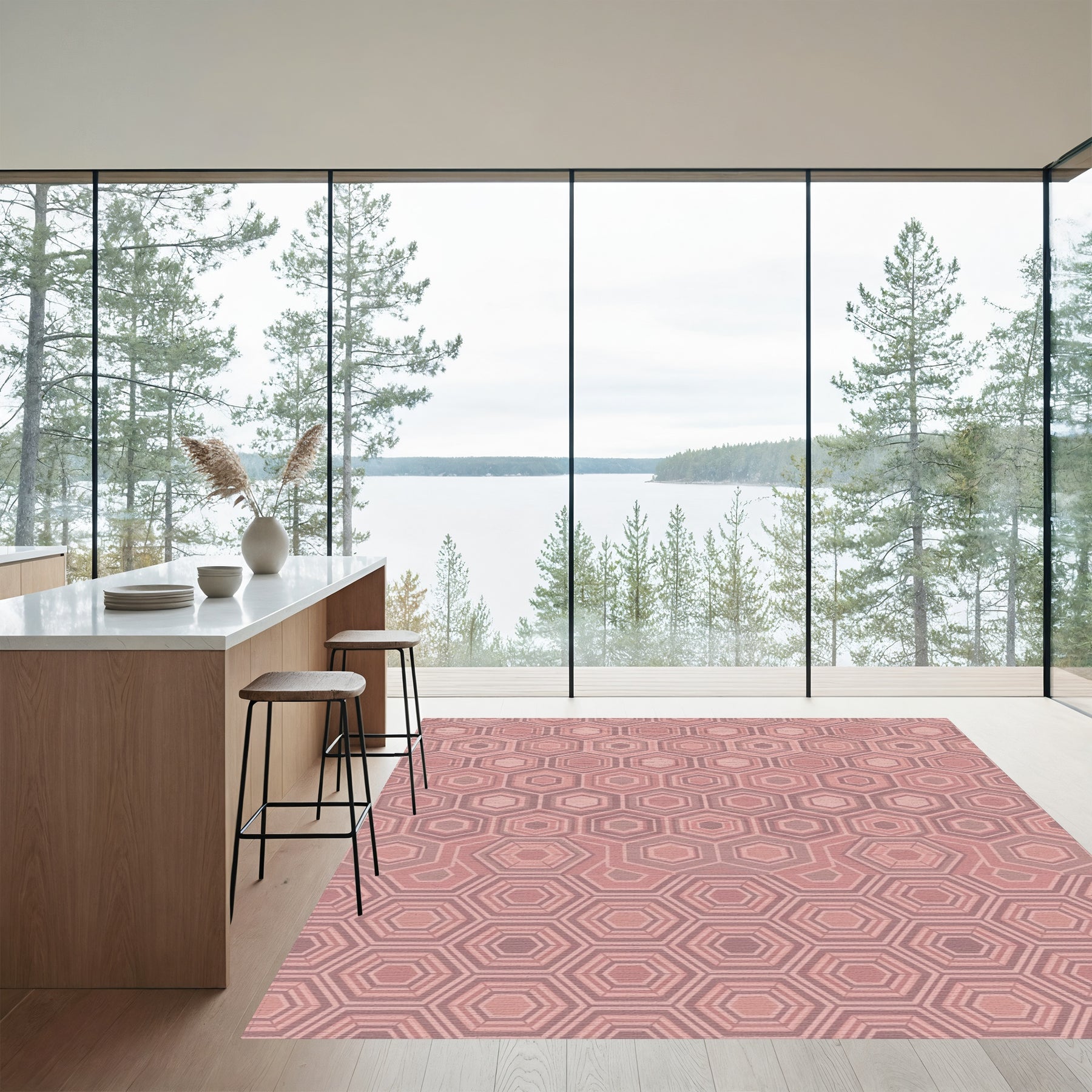 Flatwoven High Traffic Area Rug, Retro Honeycomb Geometric Rose Rug, Non Slip, Stain Resistant, Washable Area Rugs for Living Room, Bedroom Overview: