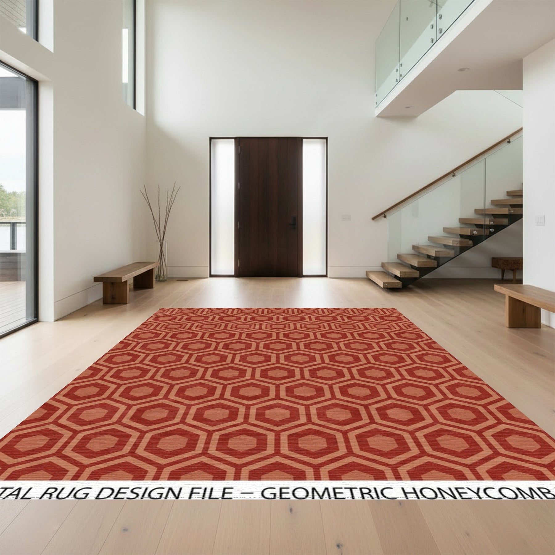 Flatwoven High Traffic Area Rug, Terracotta Red Hexagon Geometric Rug, Non Slip, Stain Resistant, Washable Area Rugs for Living Room, Bedroom Overview: