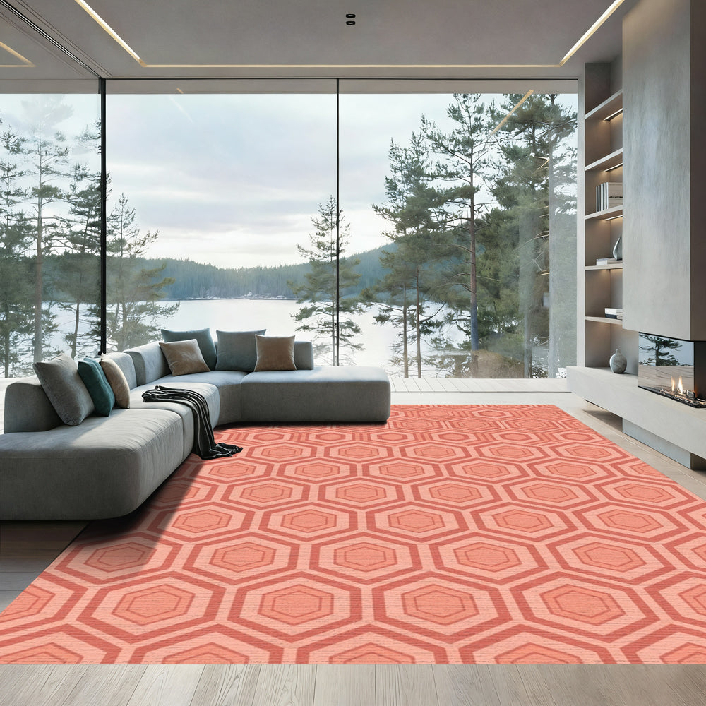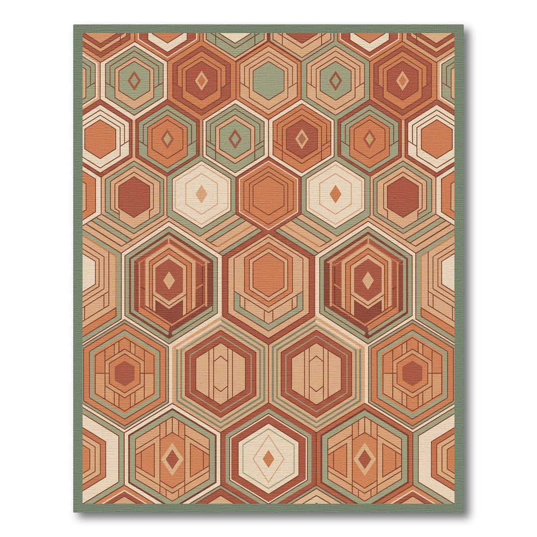 Dark Blue Hexagonal Geometric Arrangement Rug
