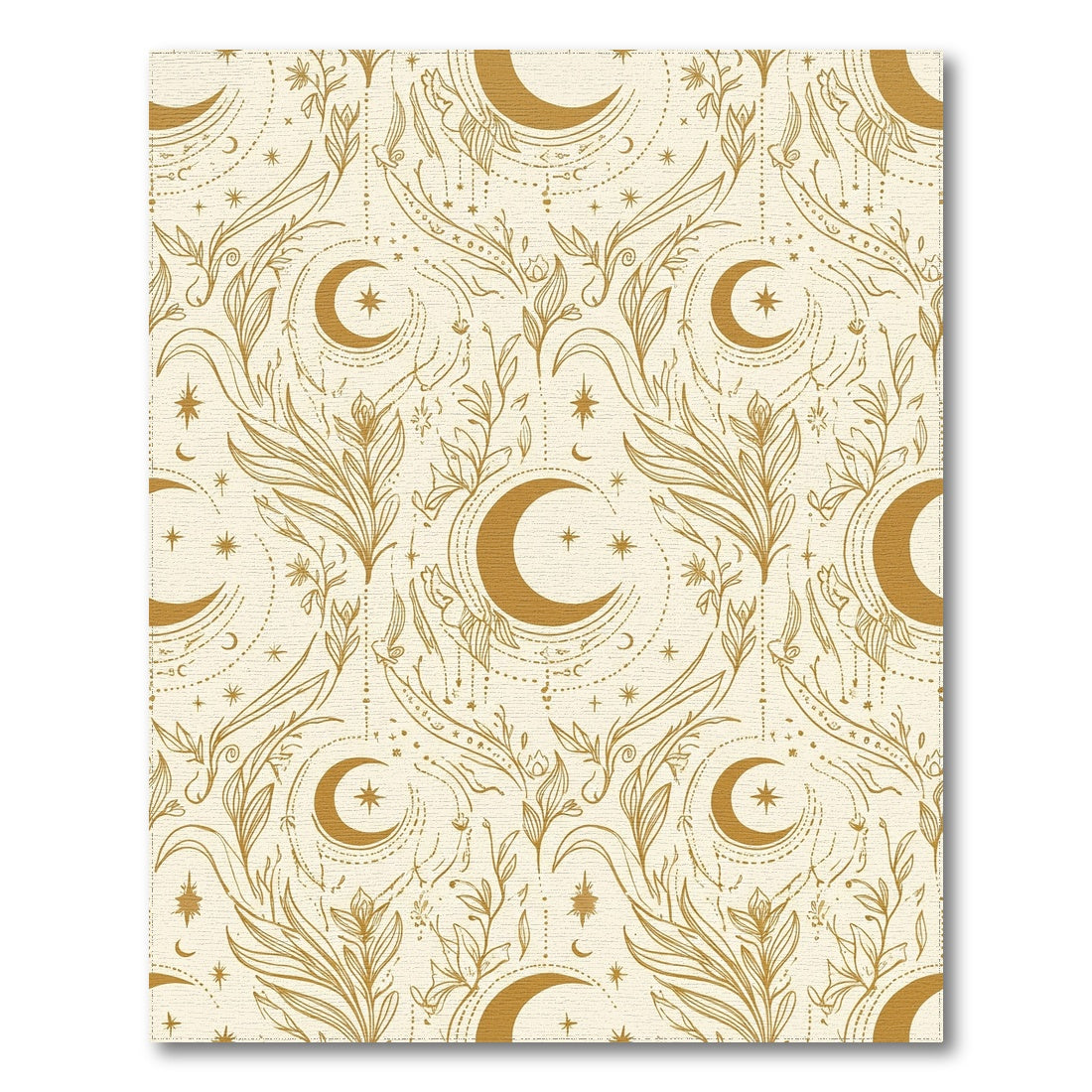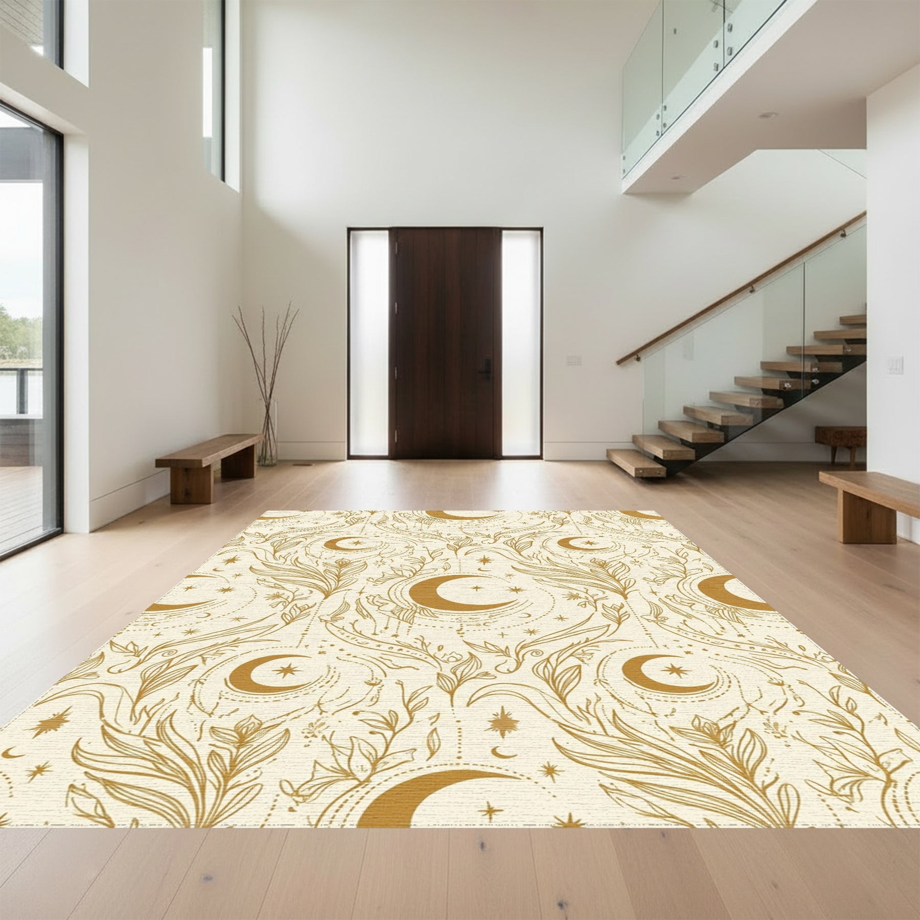 Flatwoven High Traffic Area Rug, Golden Crescent Moon Floral Whimsical Rug, Non Slip, Stain Resistant, Washable Area Rugs for Living Room, Bedroom Overview: