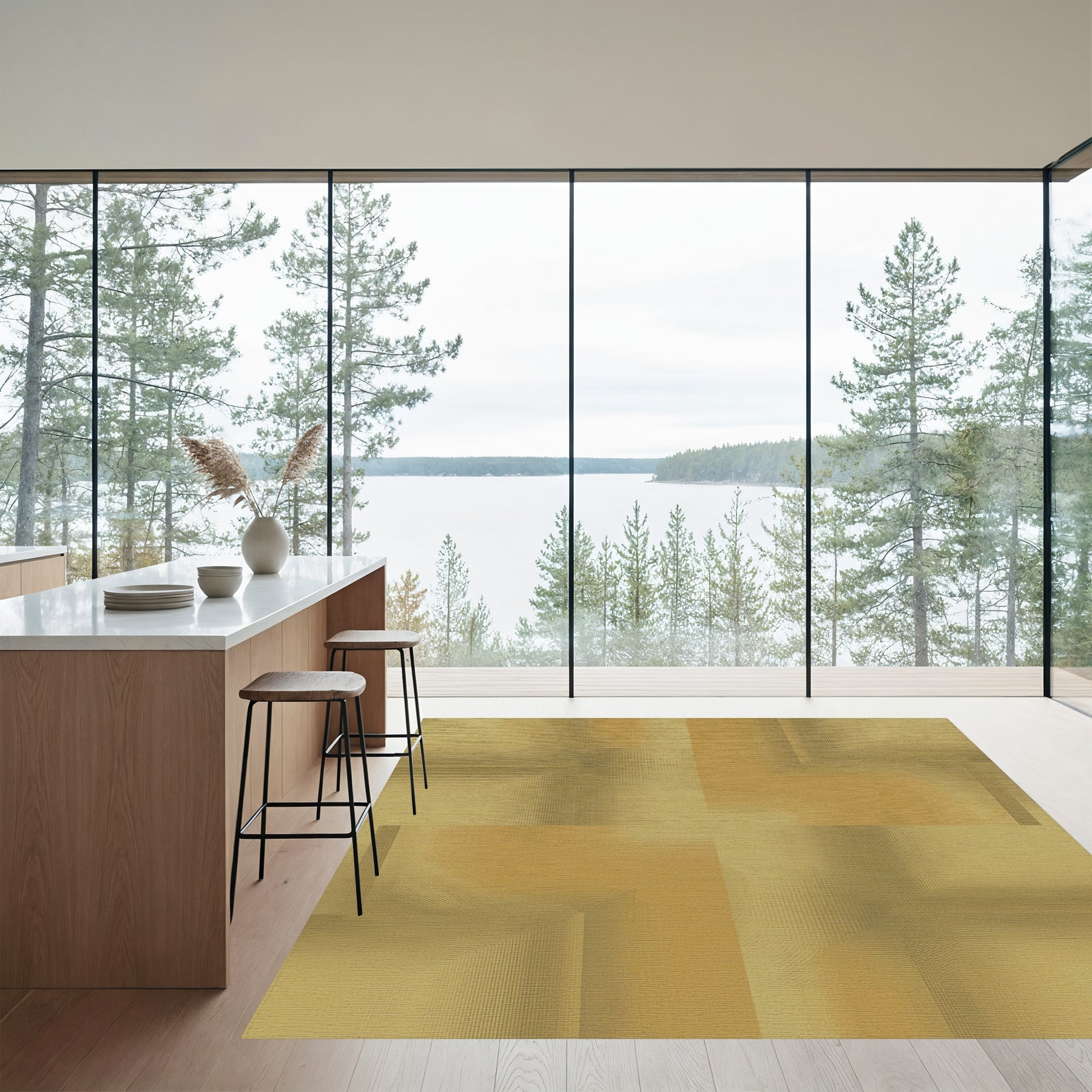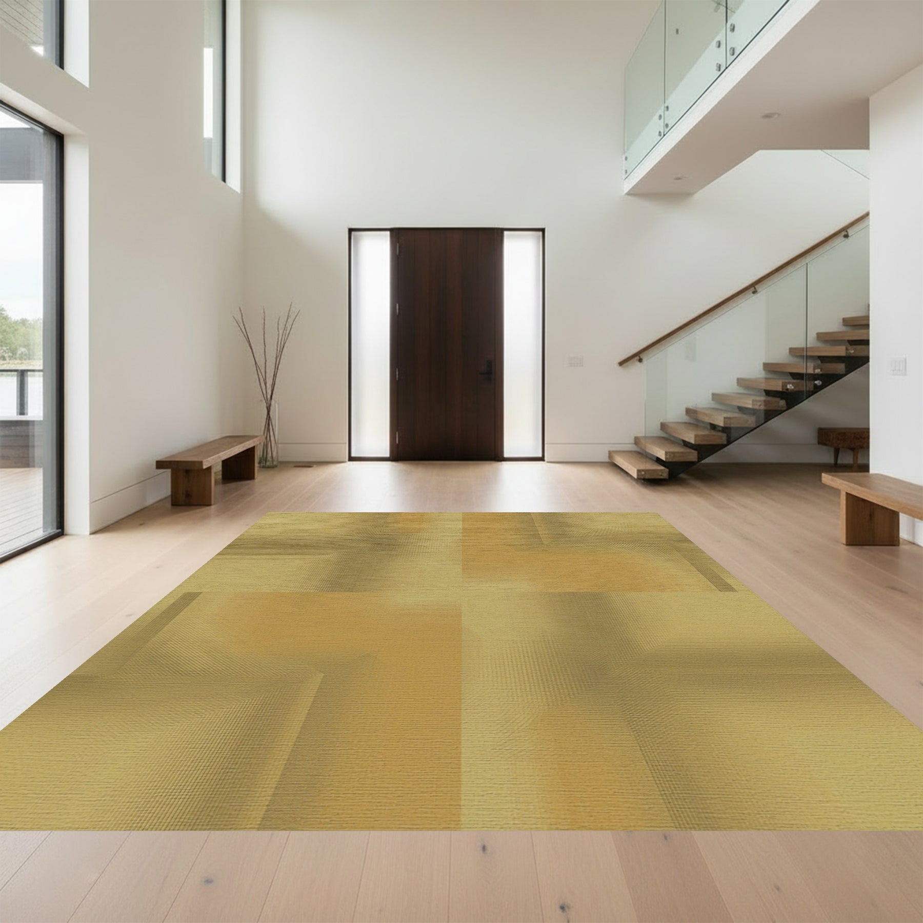 Flatwoven High Traffic Area Rug, Golden Ochre Geometric Reflection Rug, Non Slip, Stain Resistant, Washable Area Rugs for Living Room, Bedroom Overview: