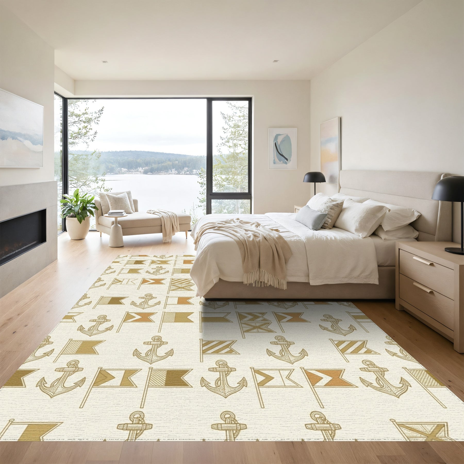 Flatwoven High Traffic Area Rug, Nautical Flags Anchor Repeating Pattern Rug, Non Slip, Stain Resistant, Washable Area Rugs for Living Room, Bedroom Overview: